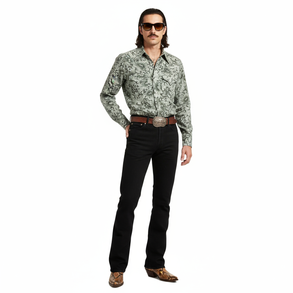 1970’S WRANGLER MADE IN USA FLORAL PRINT WESTERN PEARL SNAP L/S B.D. SHIRT SMALL