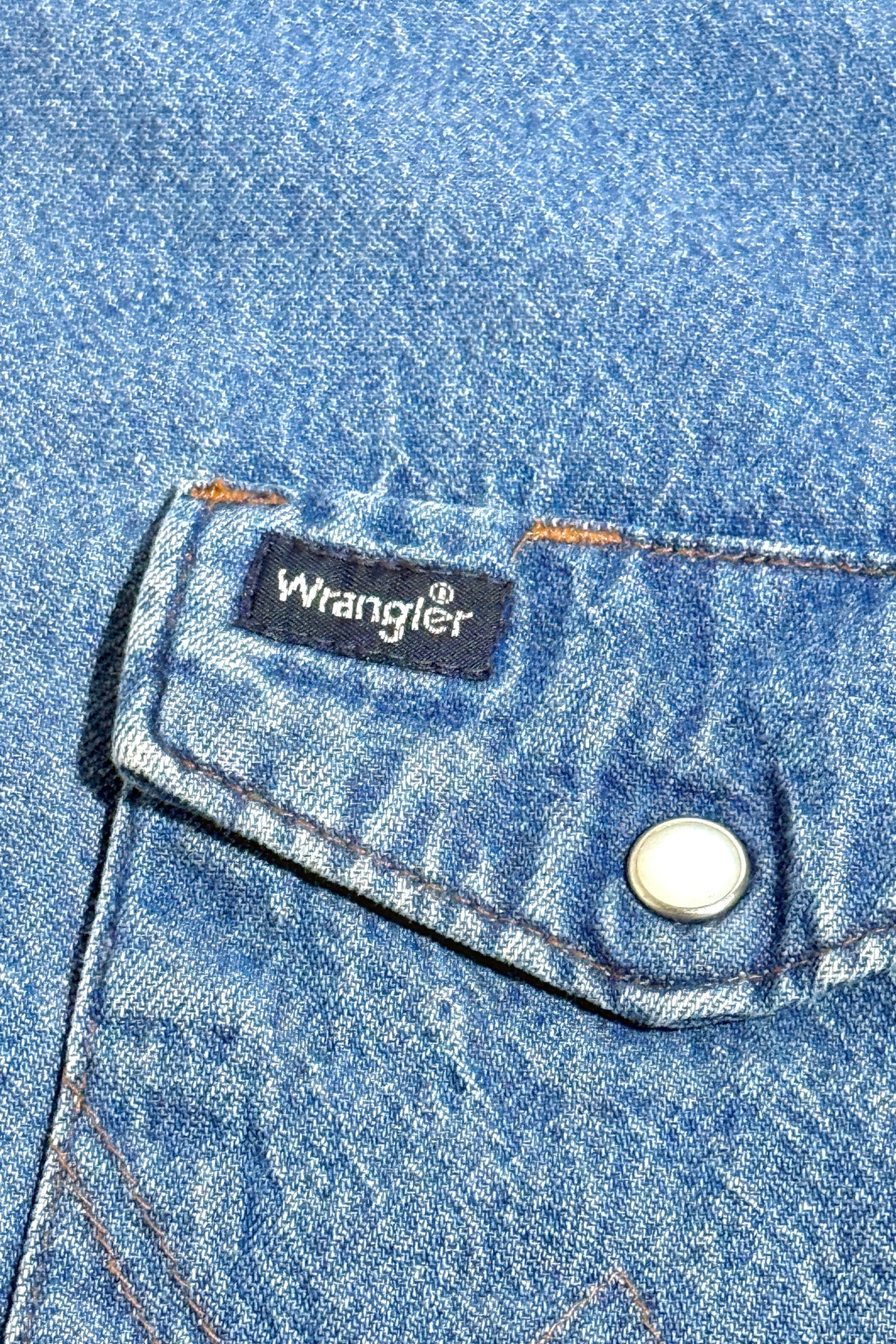 MASK X WRANGLER MADE IN USA HAND CHAINSTITCHED WESTERN FADED LIGHT WASH DENIM WESTERN PEARL SNAP L/S B.D. SHIRT S-XXL