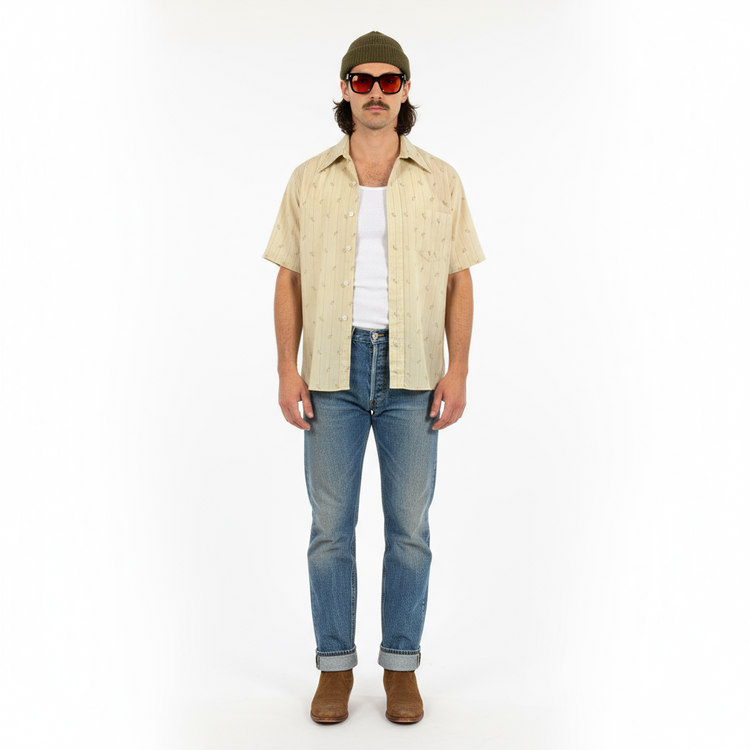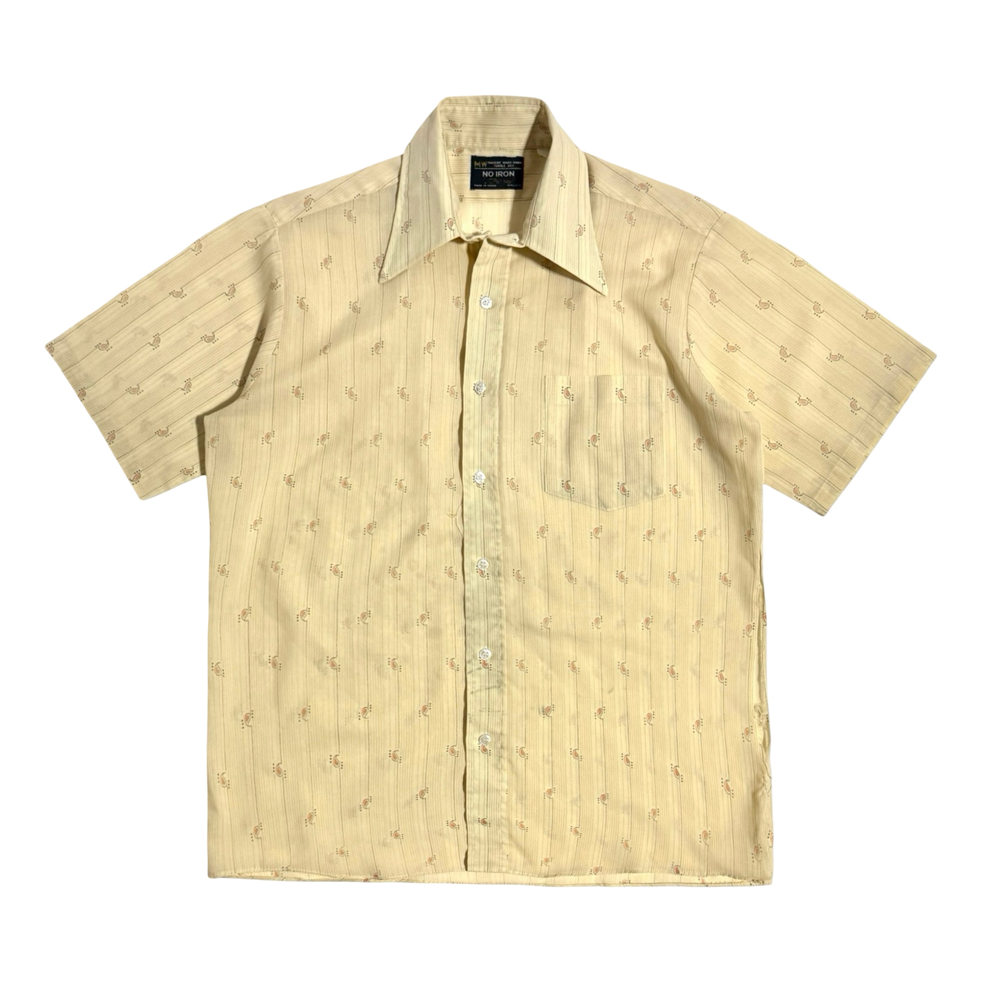 1970’S PENNEY’S MADE IN USA CROPPED PAISLEY STRIPED PRINT S/S B.D. SHIRT MEDIUM