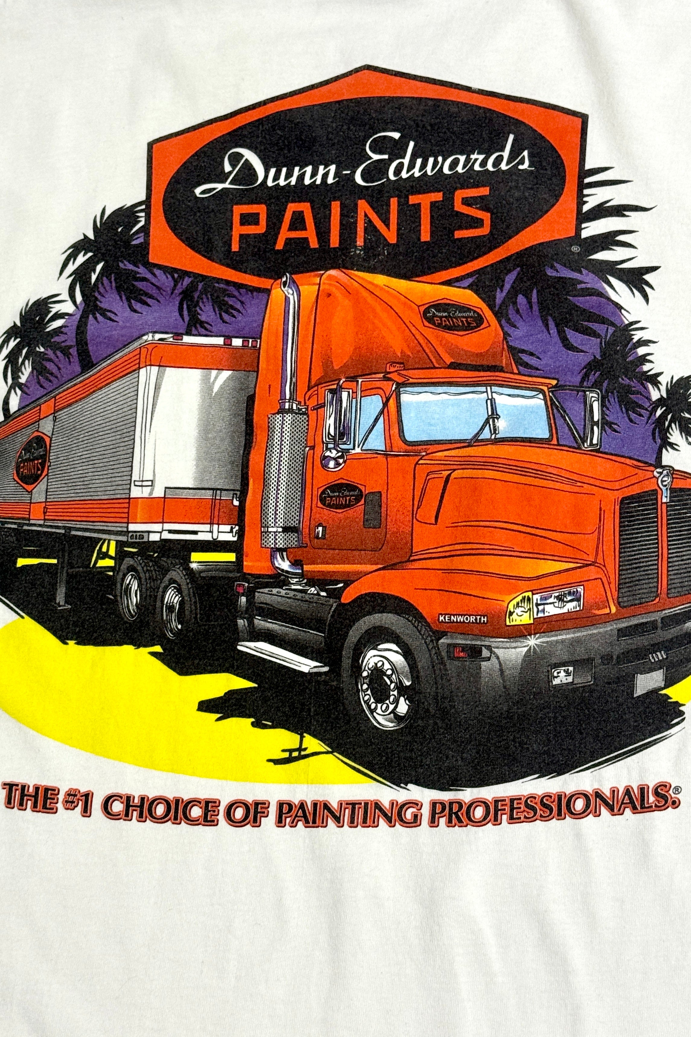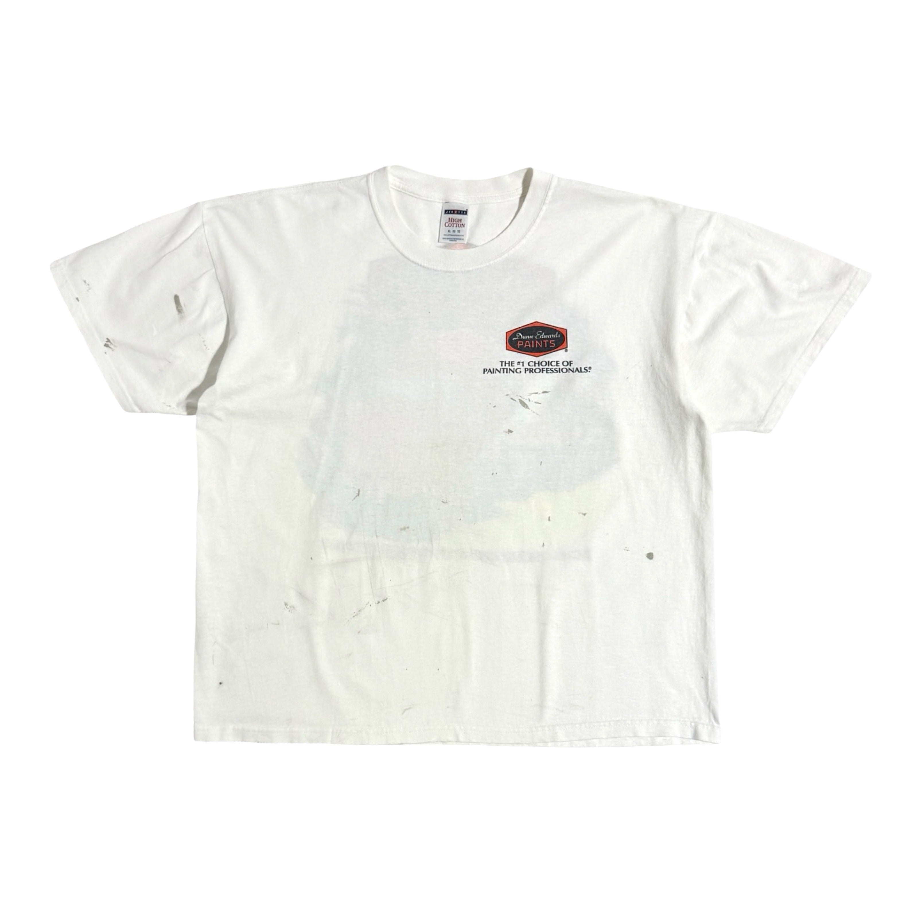 1990’S DUNLAP EDWARDS PAINTS THRASHED CROPPED PRINTED JERSEY S/S T-SHIRT X-LARGE