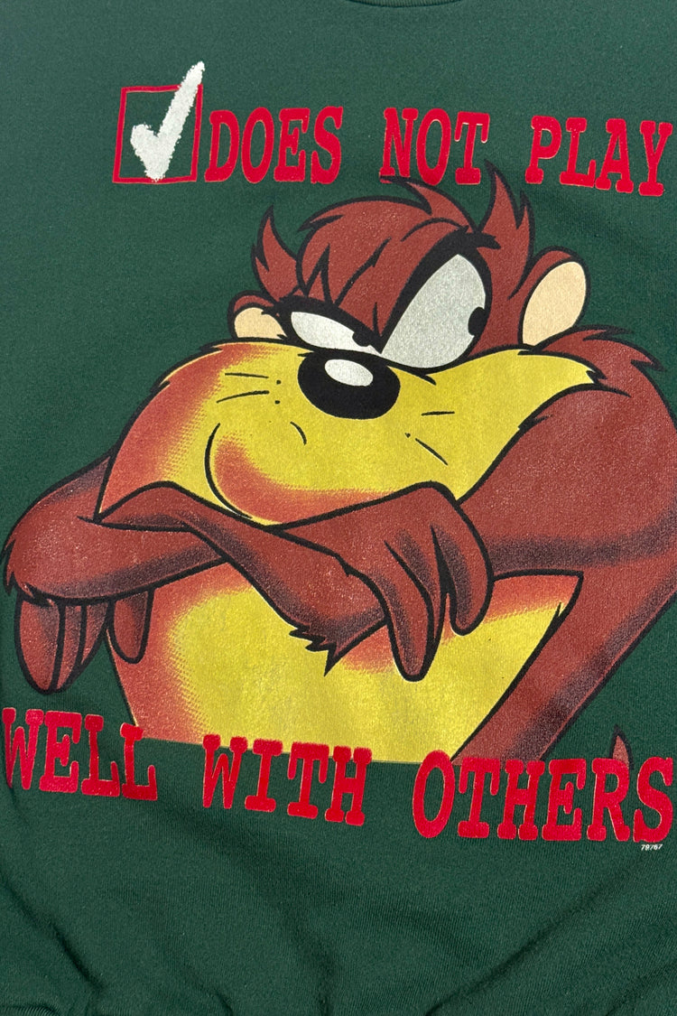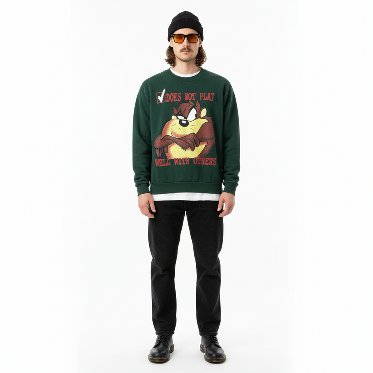 1990’S TAZ MADE IN USA “ANTISOCIAL” FLEECE CREWNECK SWEATER X-LARGE