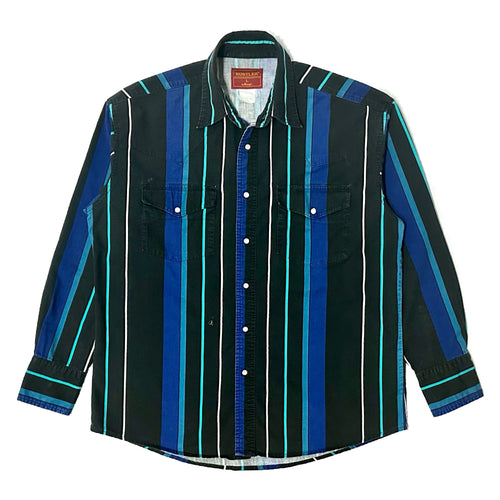 1990’S ROCKMOUNT RANCH WEAR MADE IN USA UNIVERSAL STUDIOS WARDROBE WESTERN SMILE POCKET DIAMOND PEARL SNAP B.D. SHIRT XXL