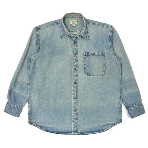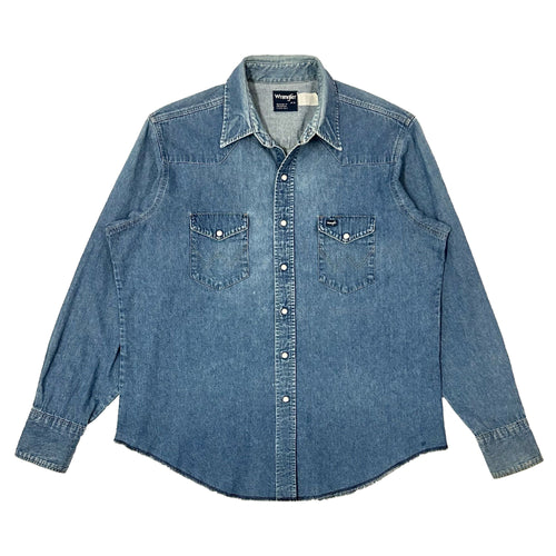 MASK X WRANGLER MADE IN USA HAND CHAINSTITCHED WESTERN MEDIUM WASH FADED WESTERN DENIM L/S B.D. SHIRT S-XXL