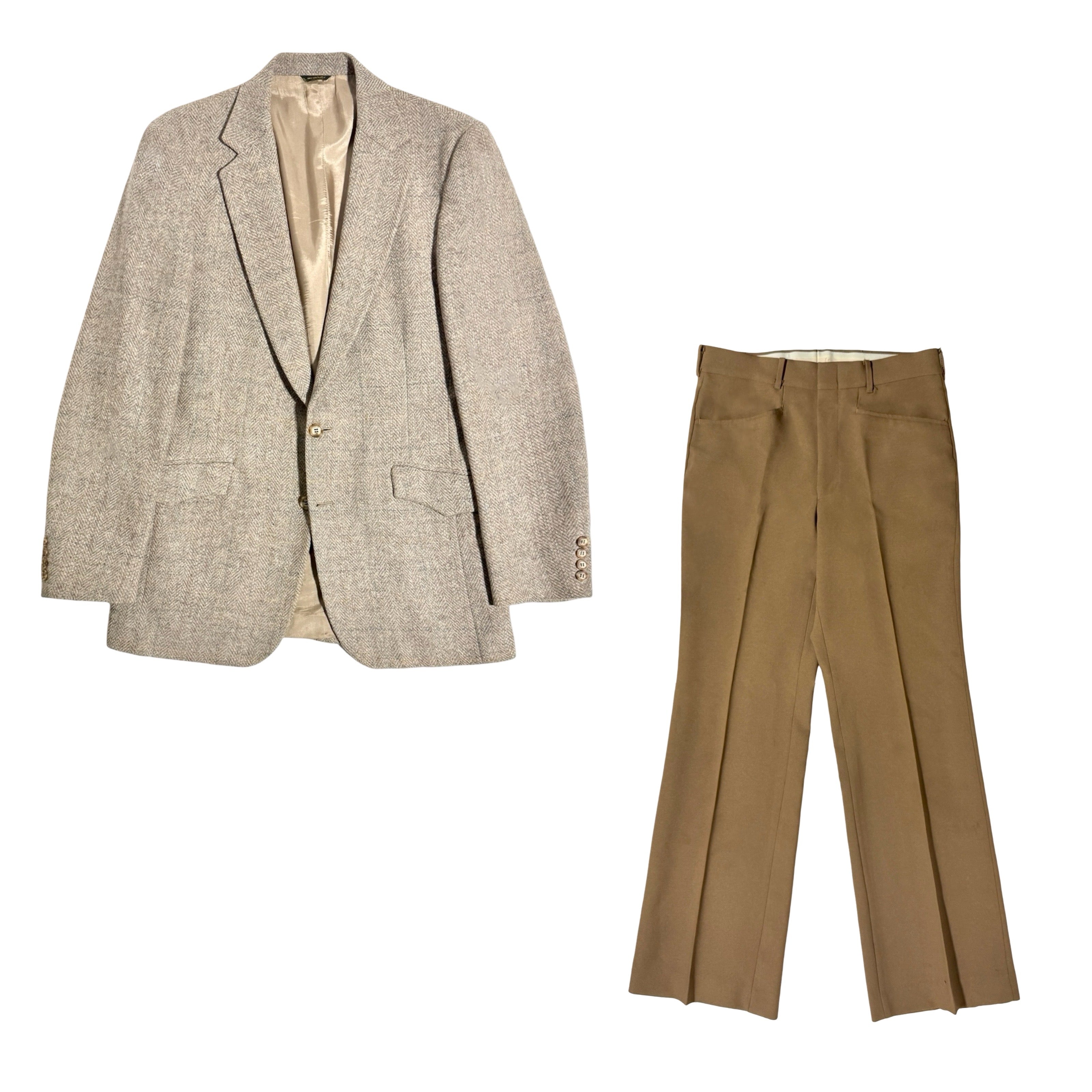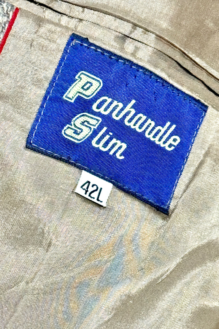1970’S PANHANDLE SLIM MADE IN USA WESTERN HERRINGBONE WOOL TWEED FLARED LEG SUIT 42R