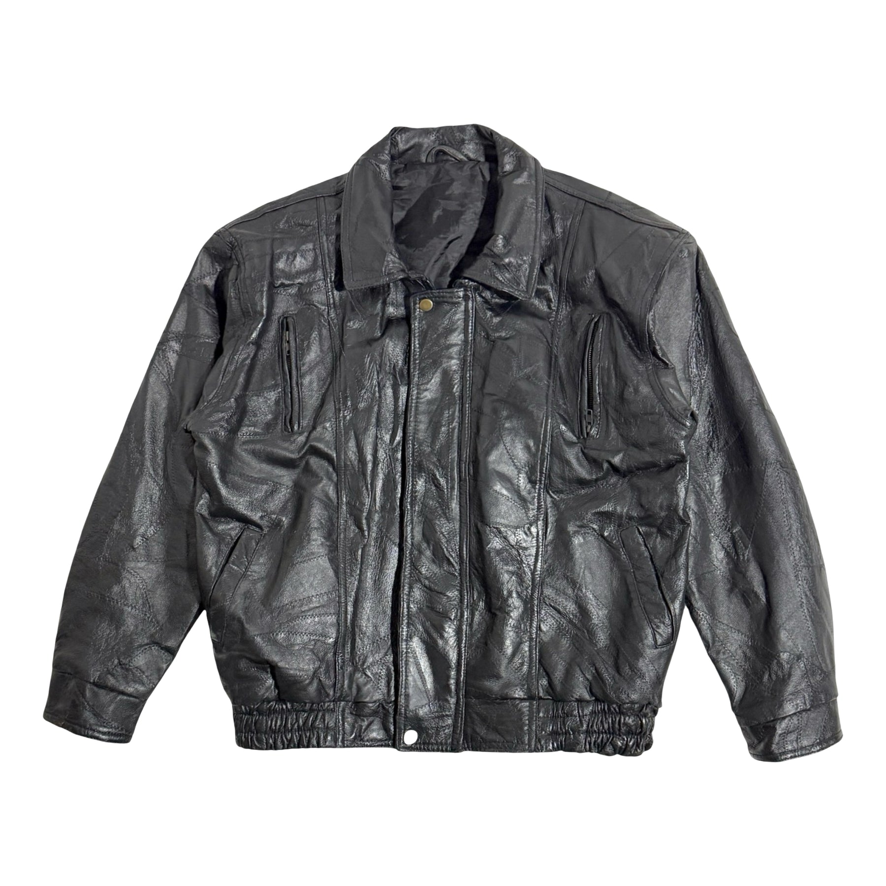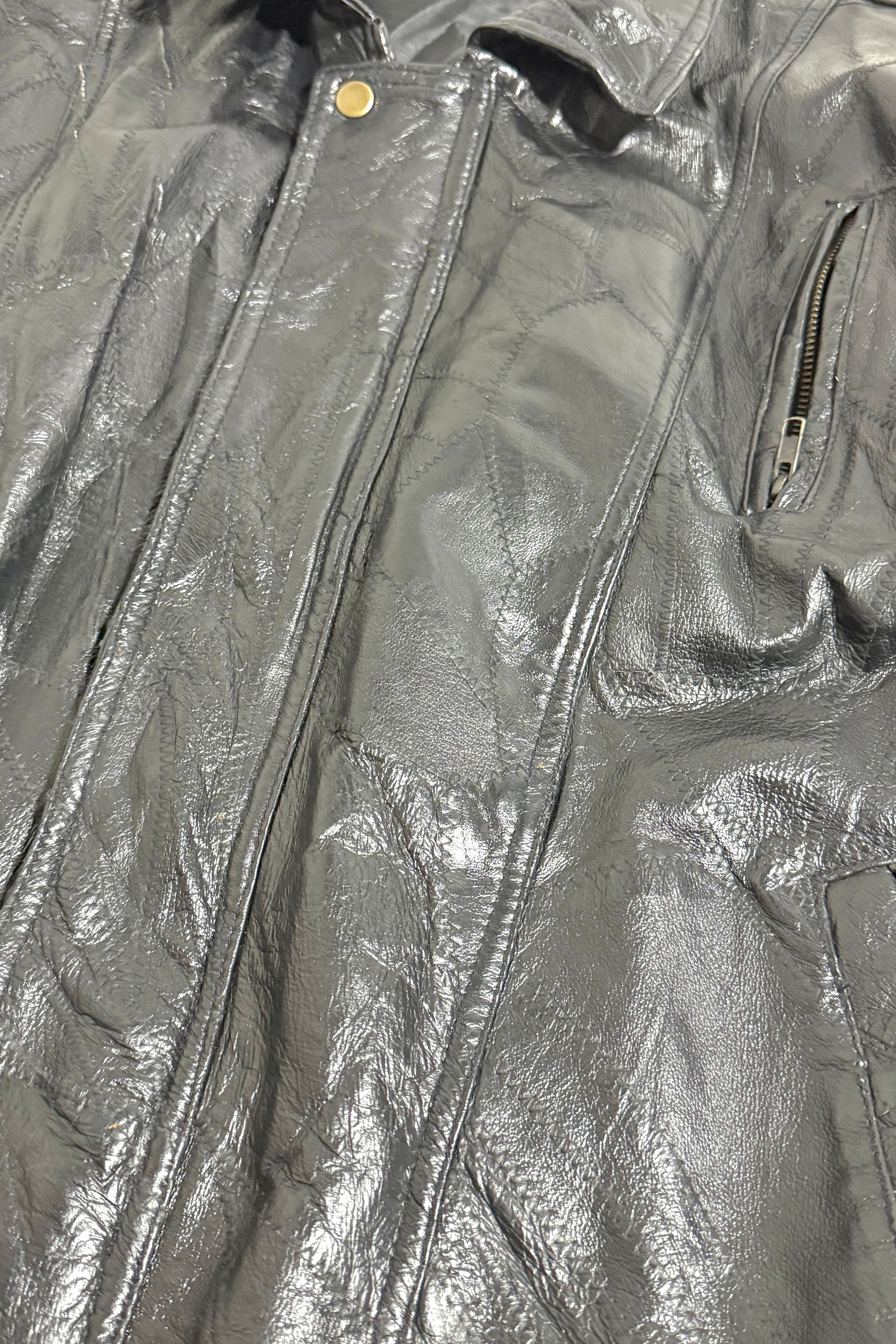 1980’S PATCHWORK LEATHER CROPPED MOTORCYCLE JACKET LARGE