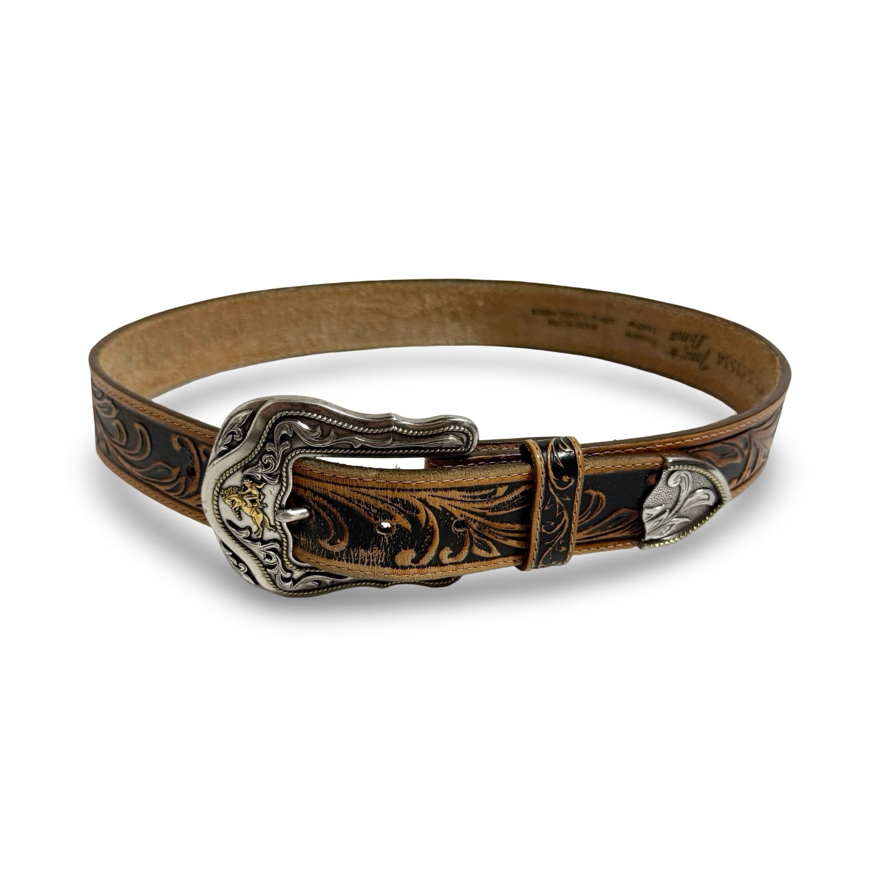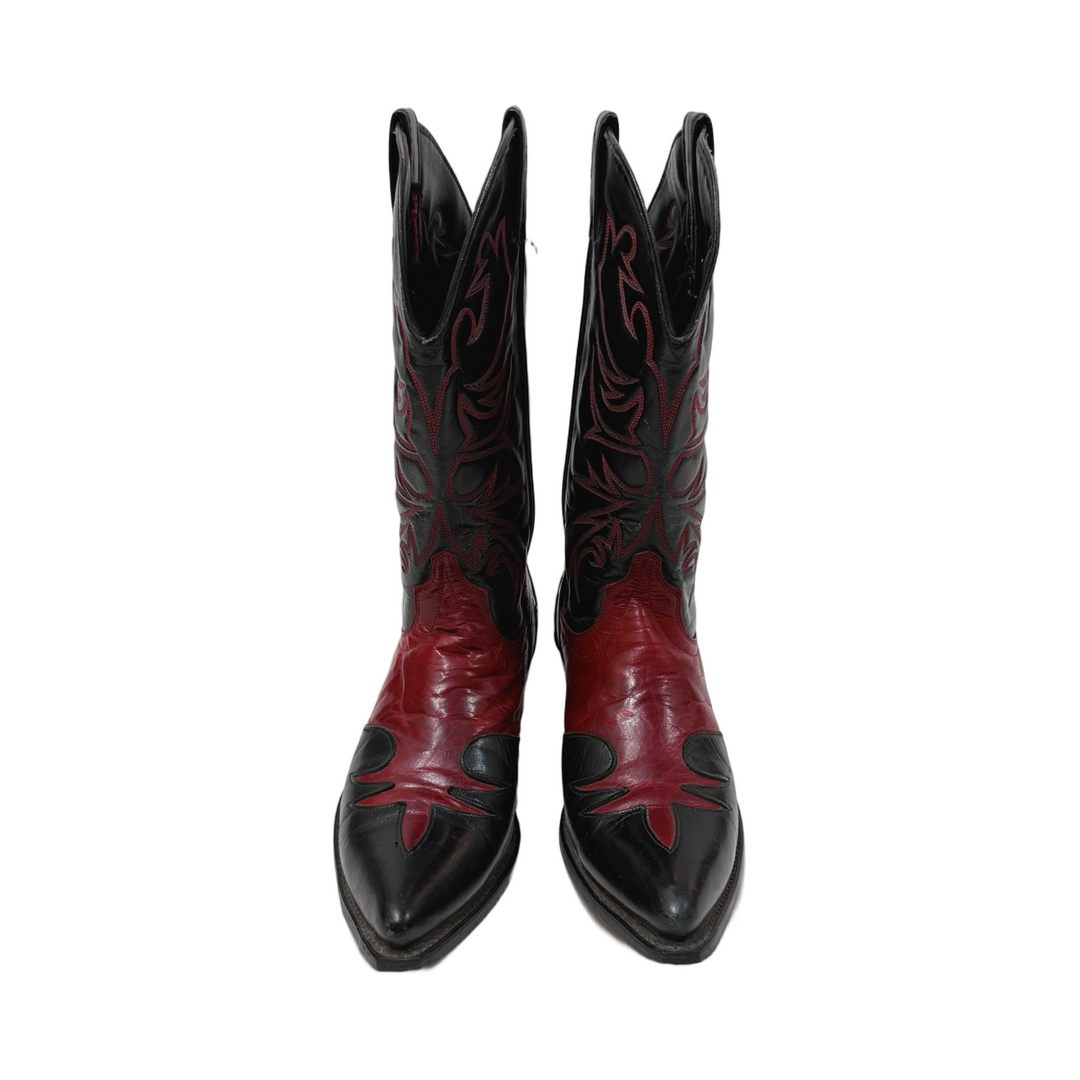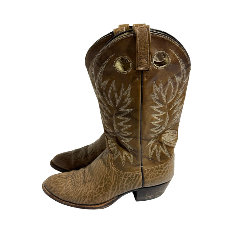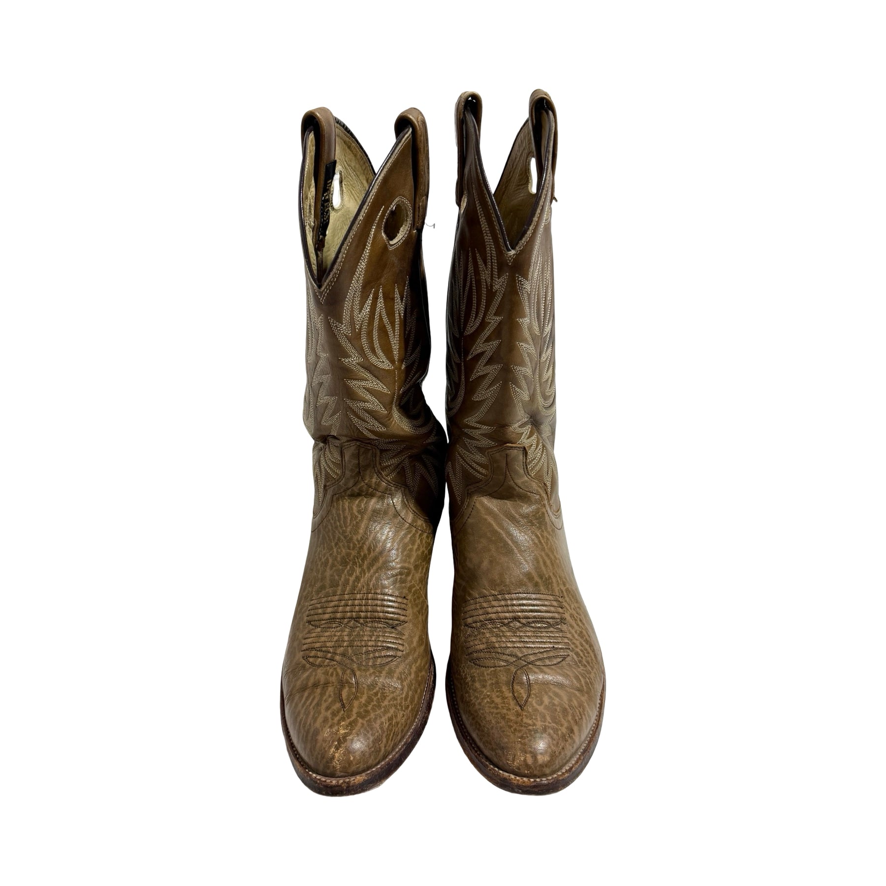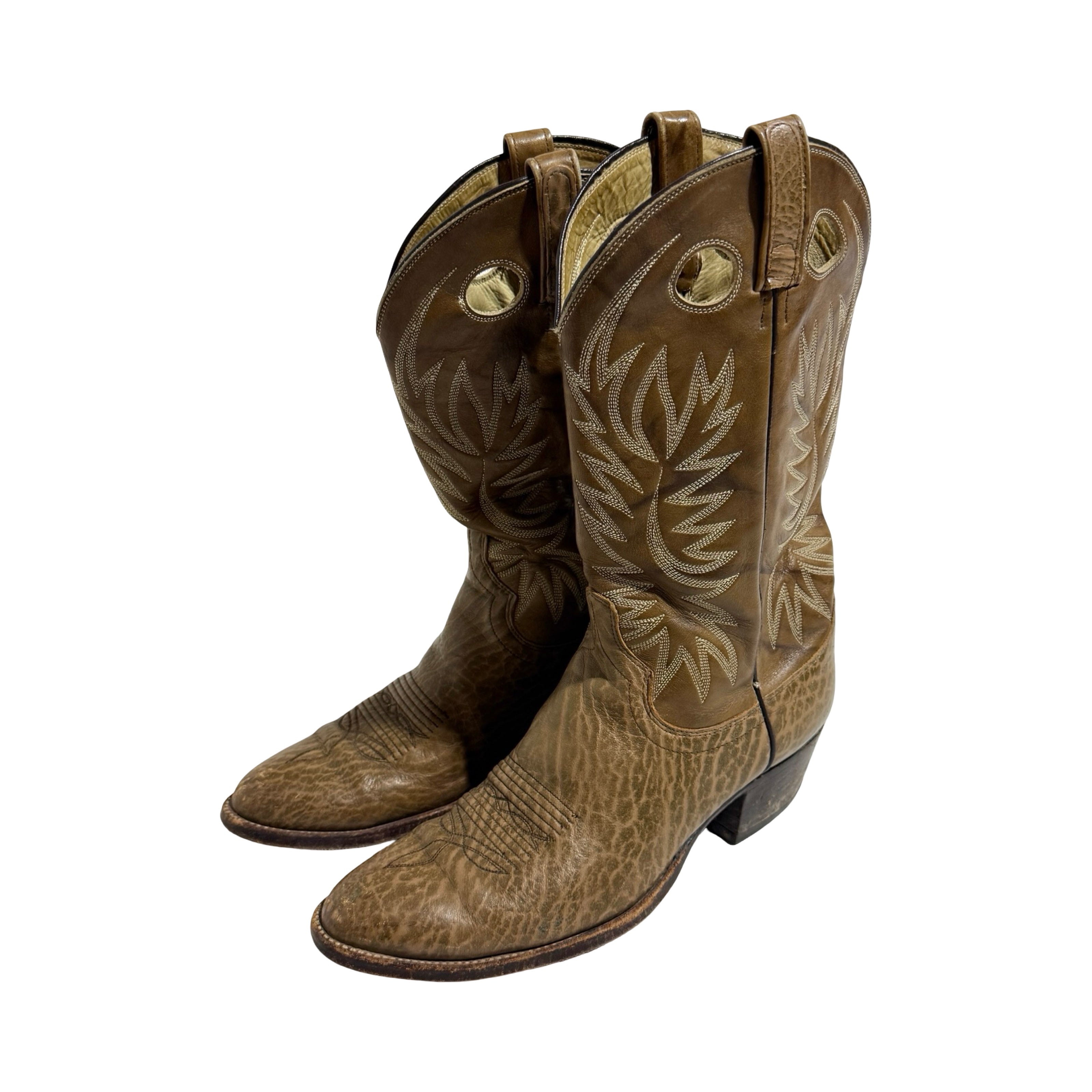 1980’S TAN LEATHER MADE IN USA EMBROIDERED COWBOY BOOTS 9