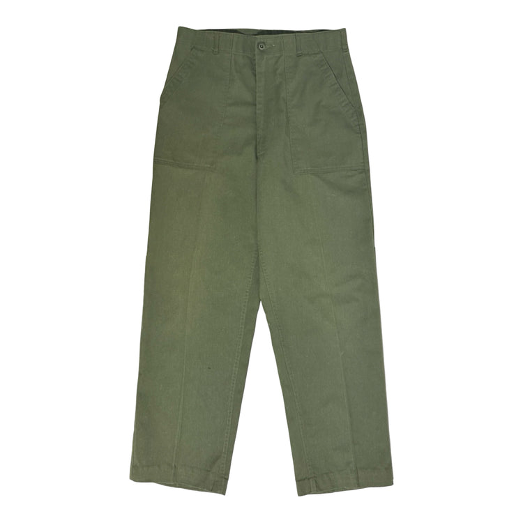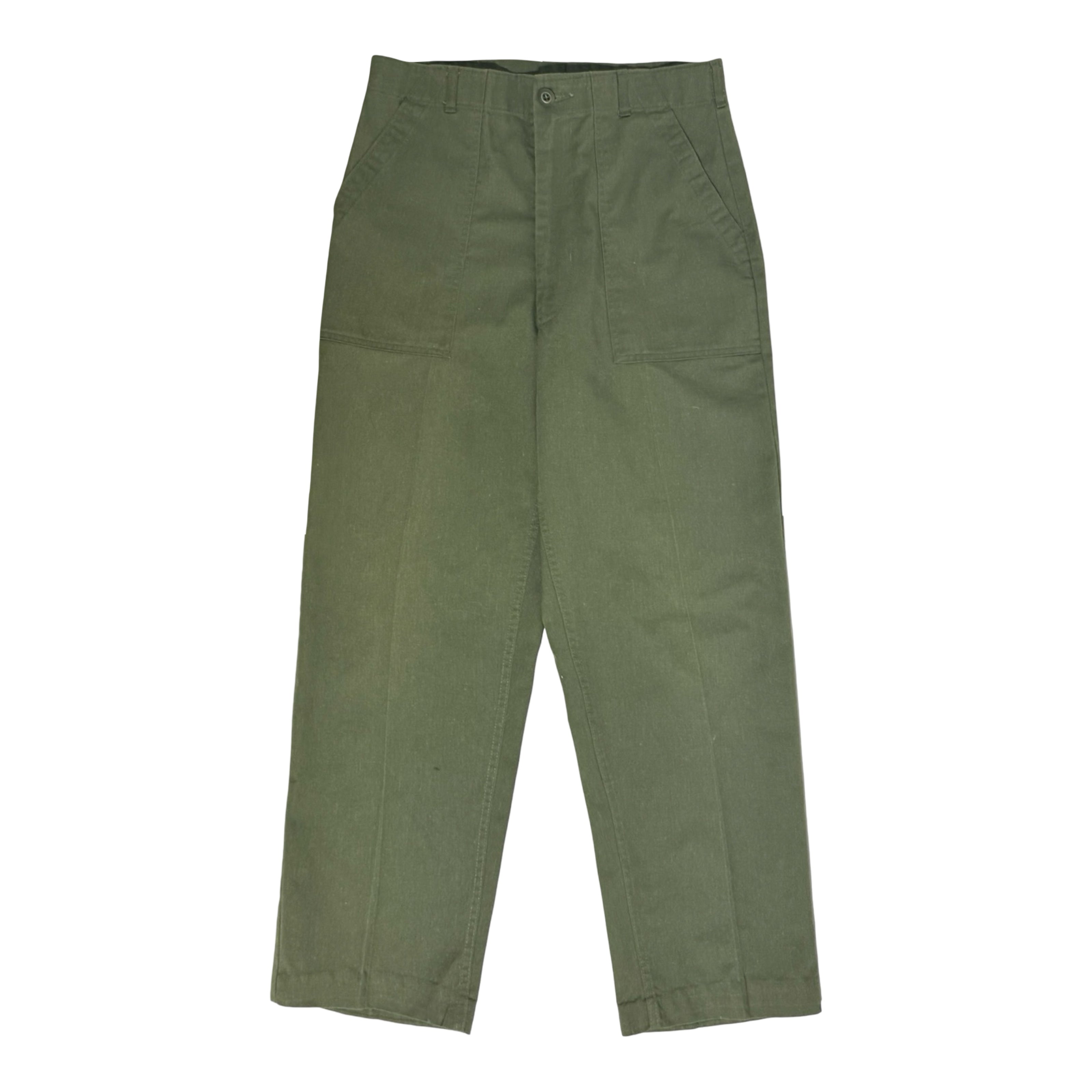 1980’S US ARMY MADE IN USA OG-507 HIGH WAISTED OLIVE DRAB TWILL TROUSER PANTS 34 X 28