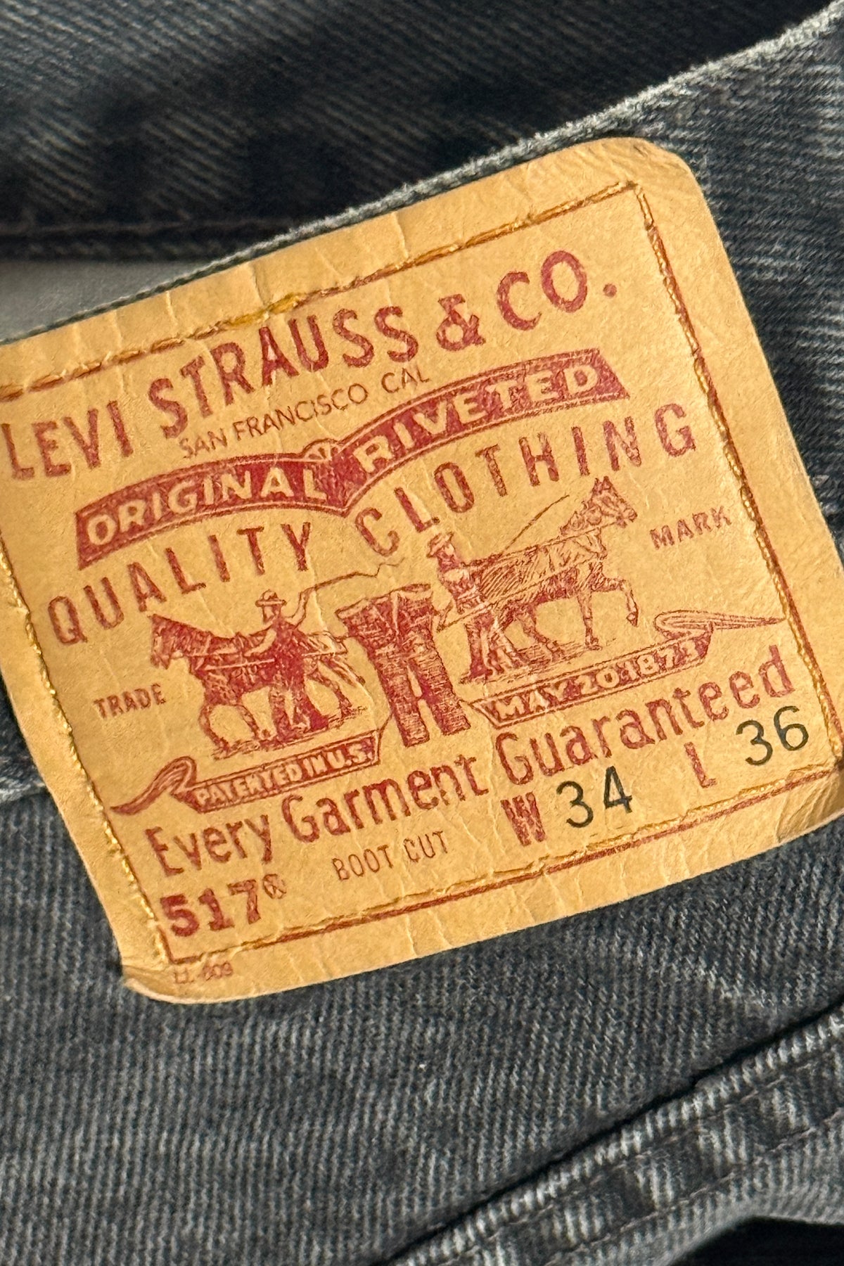 1980’S LEVI’S 517 STAPREST MADE IN USA NAVY BOOTCUT PANTS 34 X 30