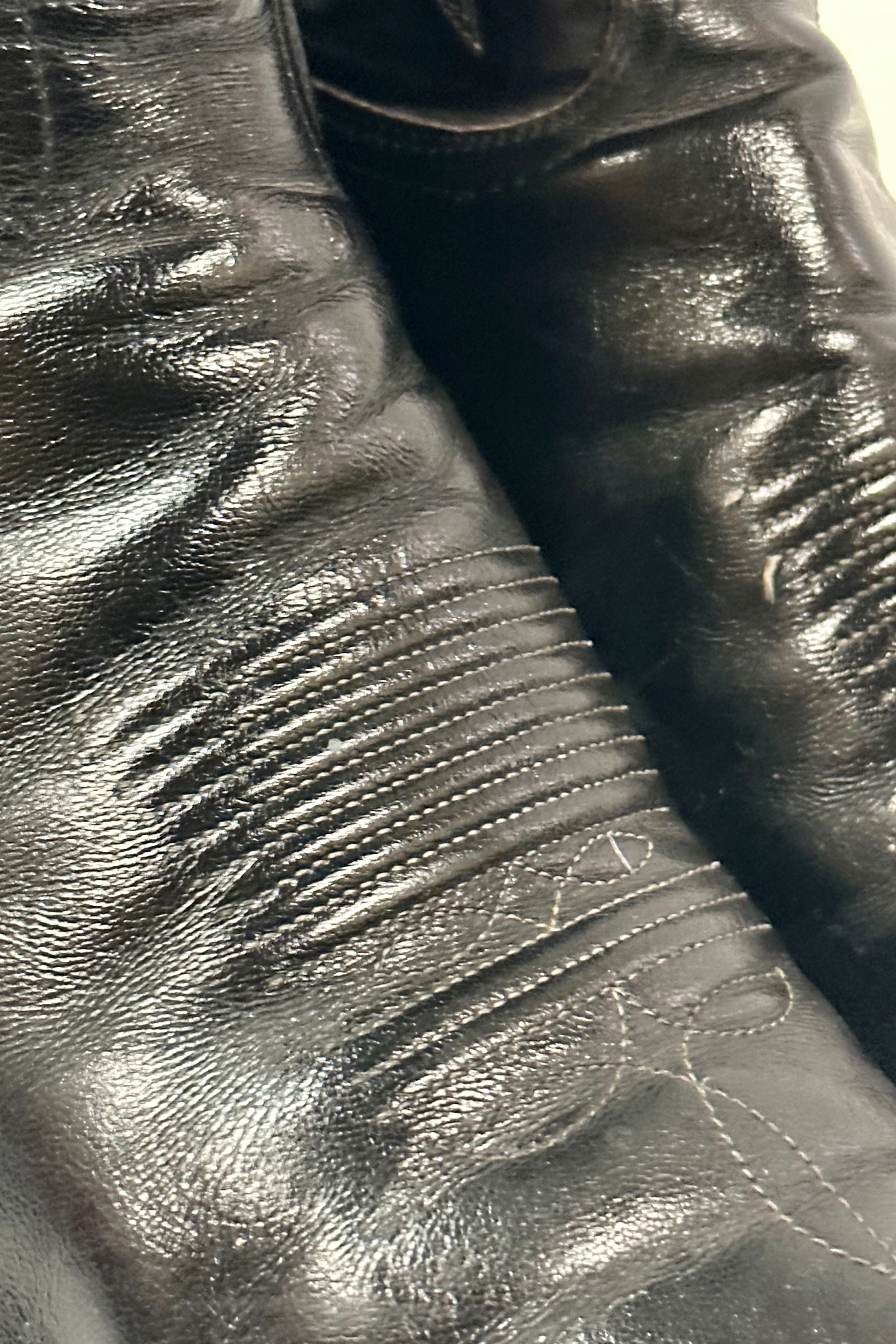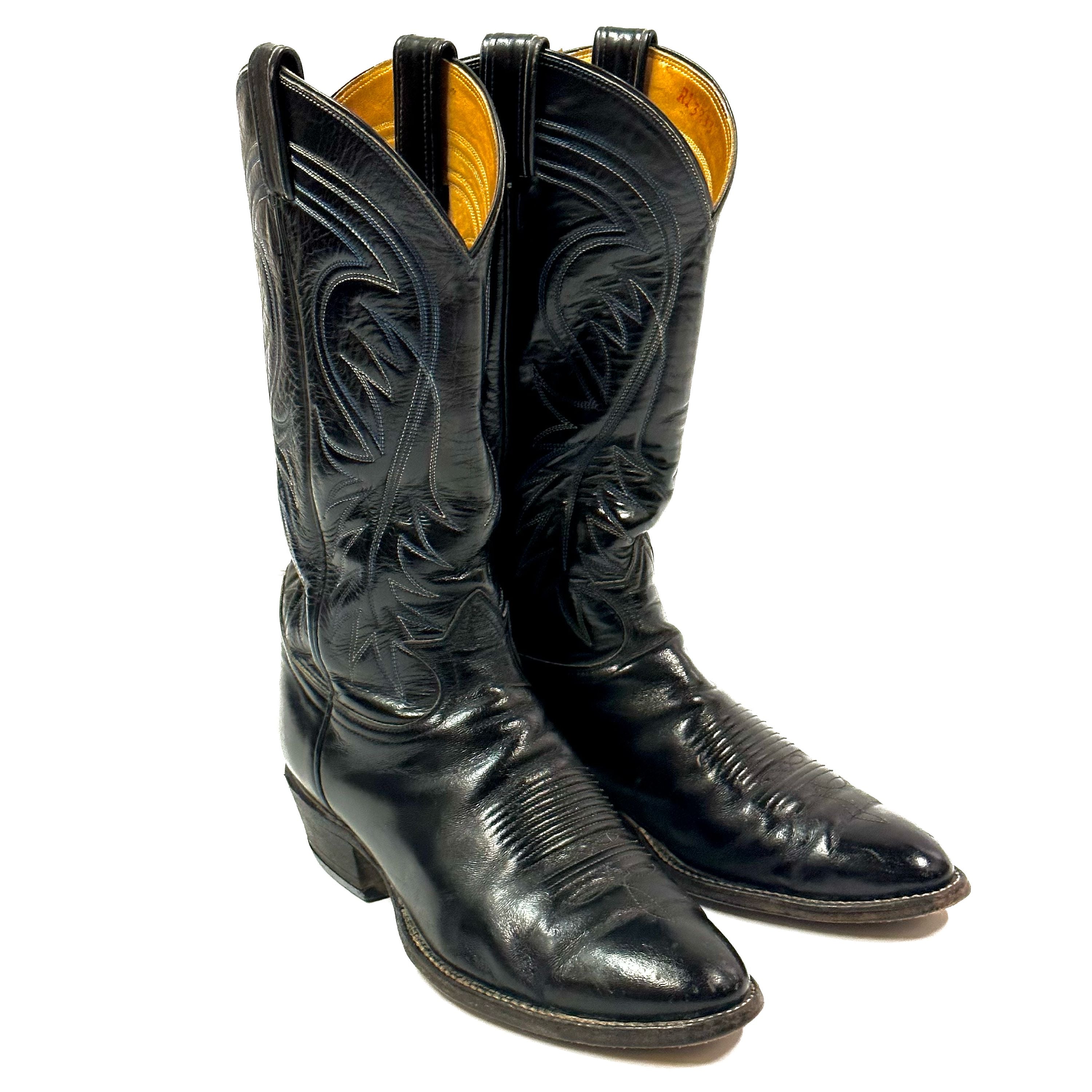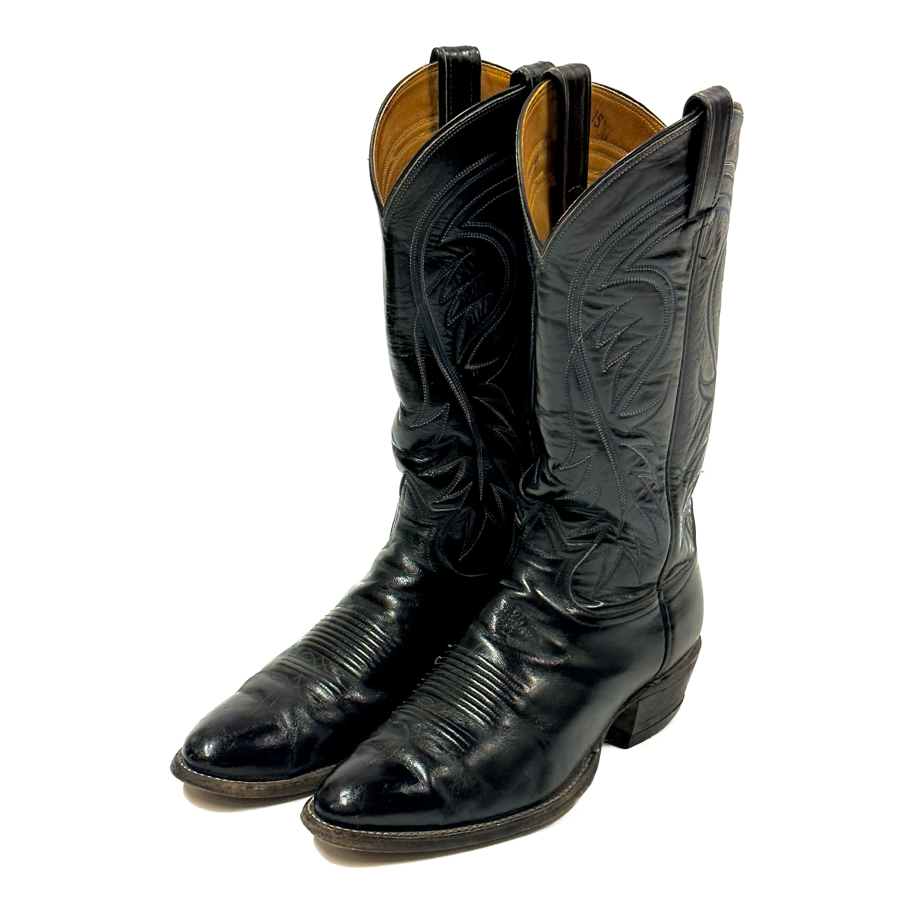 1980’S TONY LAMA MADE IN USA EMBROIDERED BLACK COWBOY BOOTS 8