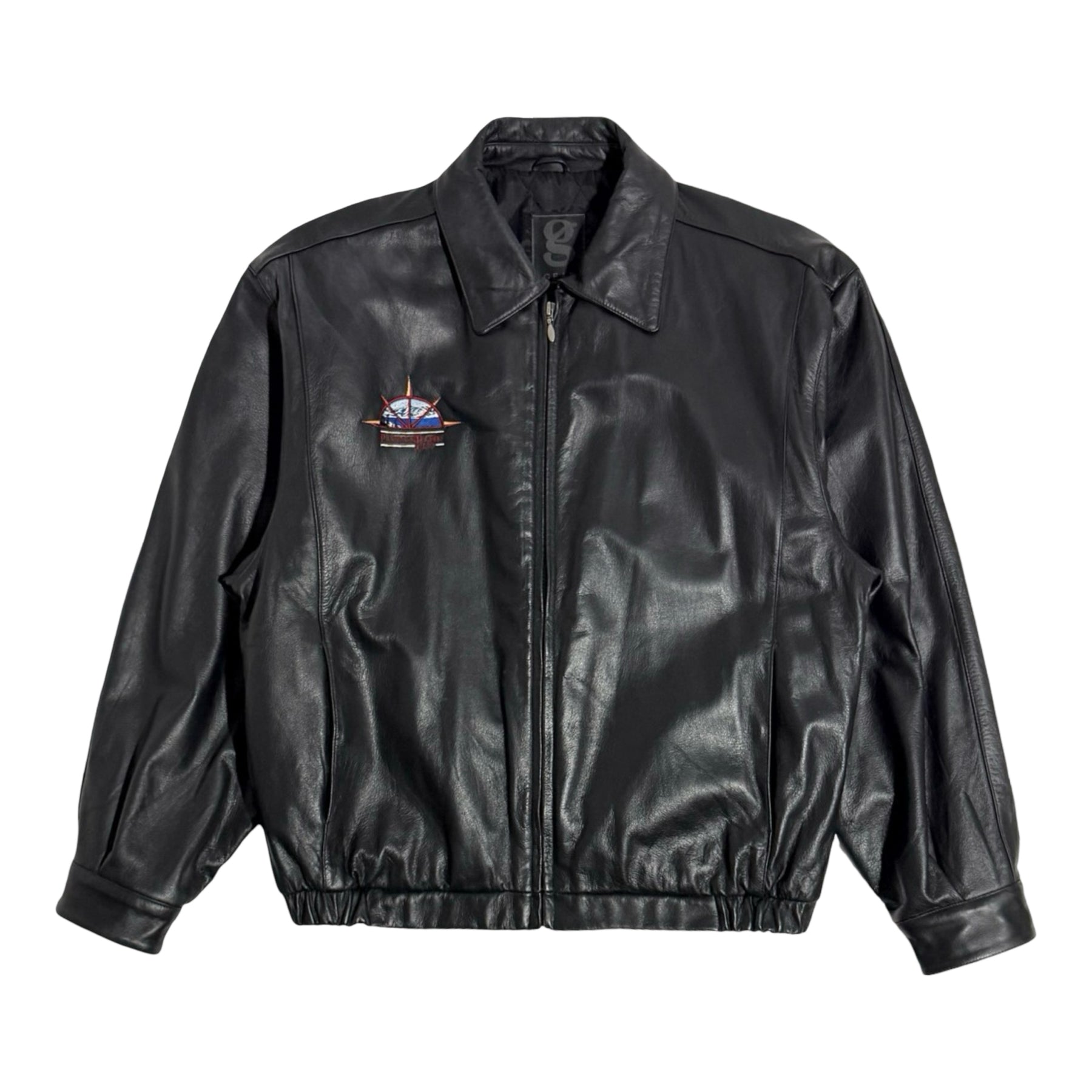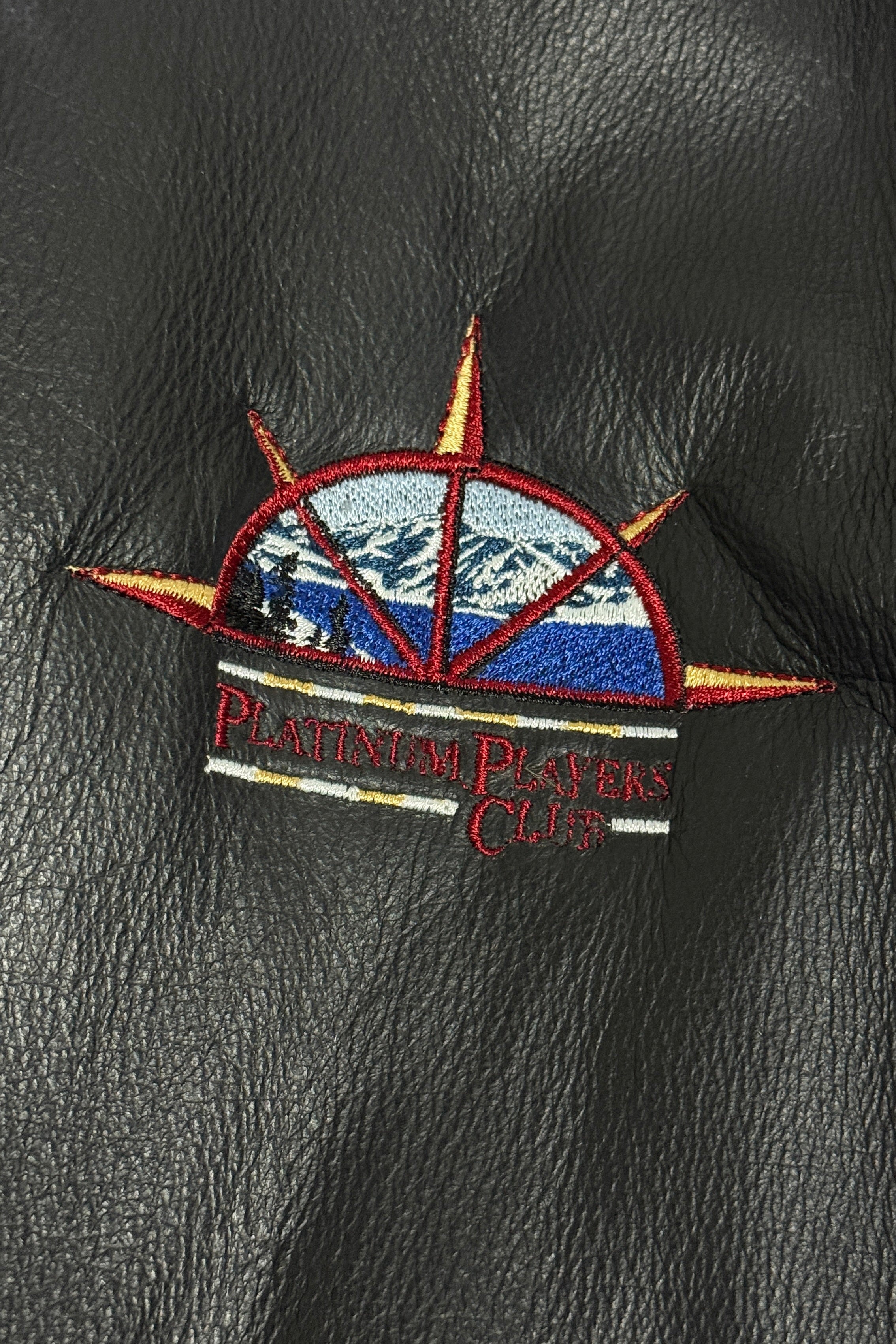 1990’S PLATINUM PLAYERS CLUB CROPPED BLACK LEATHER ZIP JACKET X-LARGE