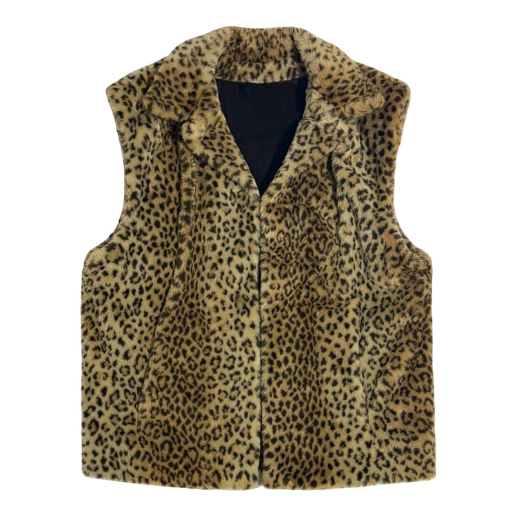 1990’S LEOPARD PRINT MADE IN USA DEEP PILE SHERPA VEST LARGE