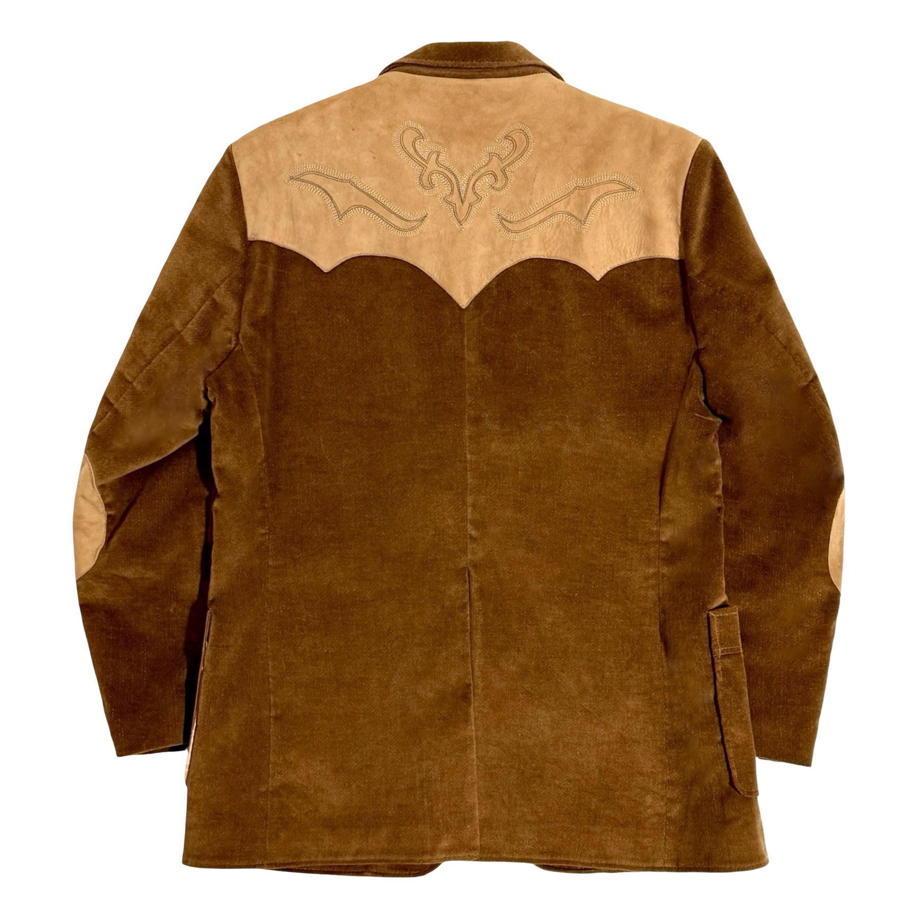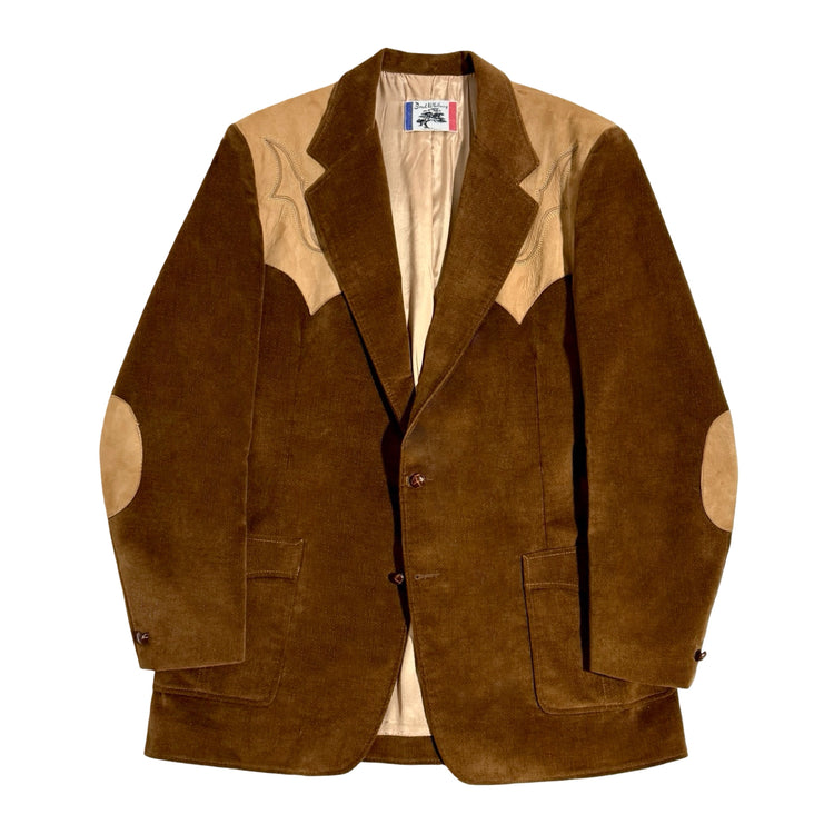 1970’S BRAD WHITNEY MADE IN USA WESTERN EMBROIDERED SUEDE LEATHER YOKE VELOUR BLAZER SUIT JACKET 44R