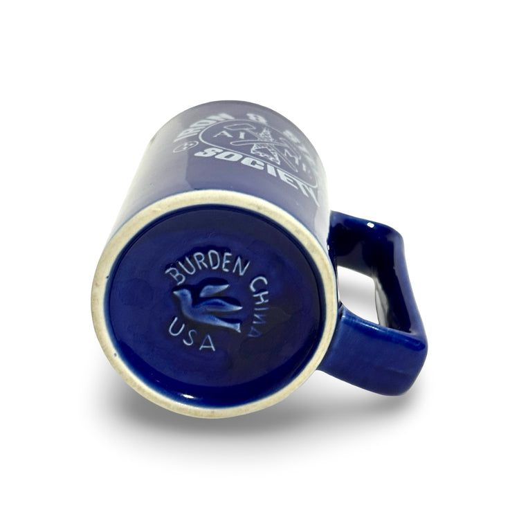 1990’S BURDEN CHINA MADE IN USA IRON & STEEL SOCIETY BLUE GLAZED CERAMIC COFFEE MUG