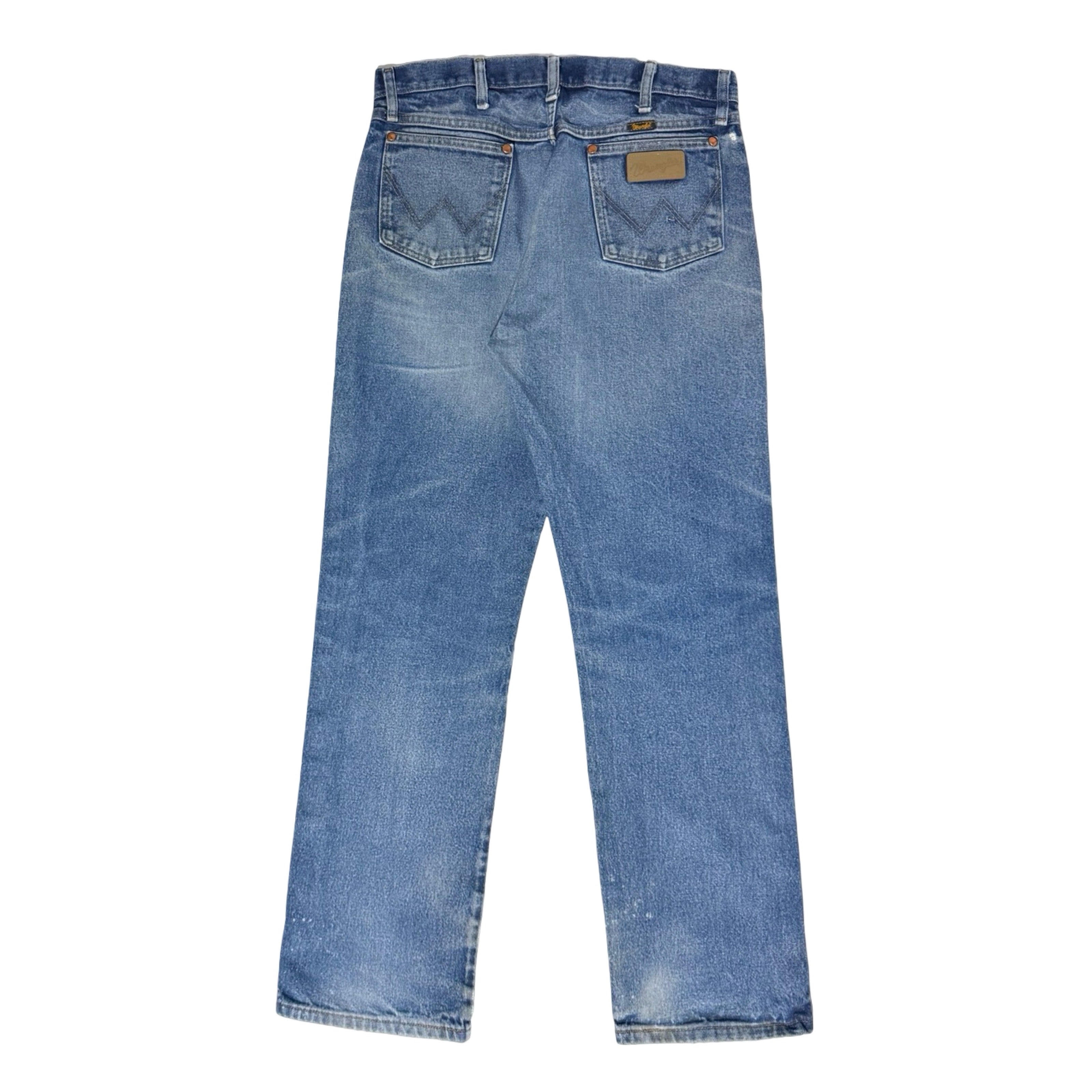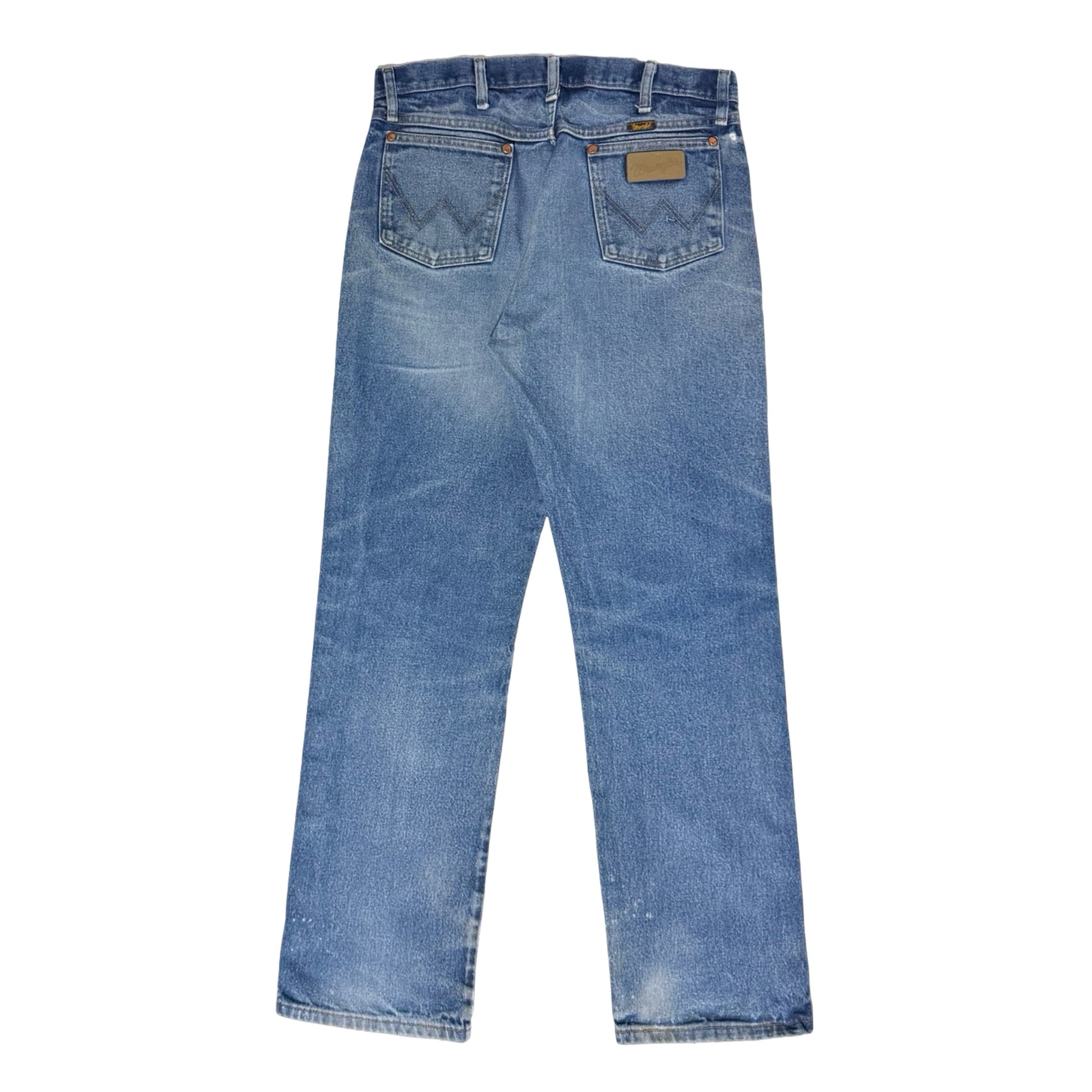 1990’S WRANGLER PERFECT WASH FADED COWBOY CUT DENIM JEANS 32 X 32