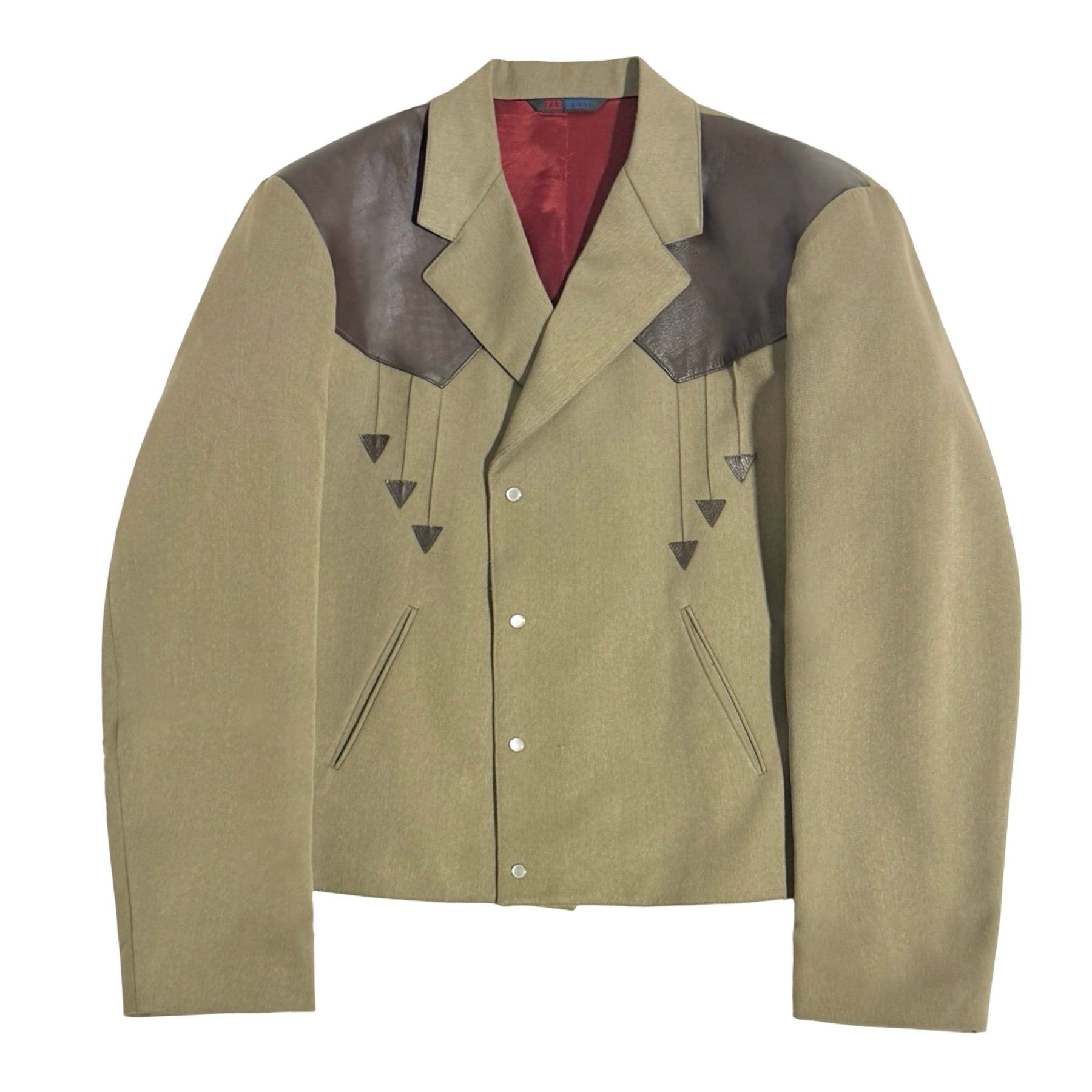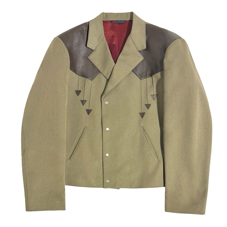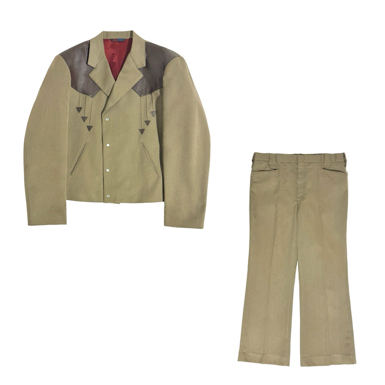 1980’S FAR WEST MADE IN USA CROPPED LEATHER PANEL YOKE WESTERN SUIT 44R