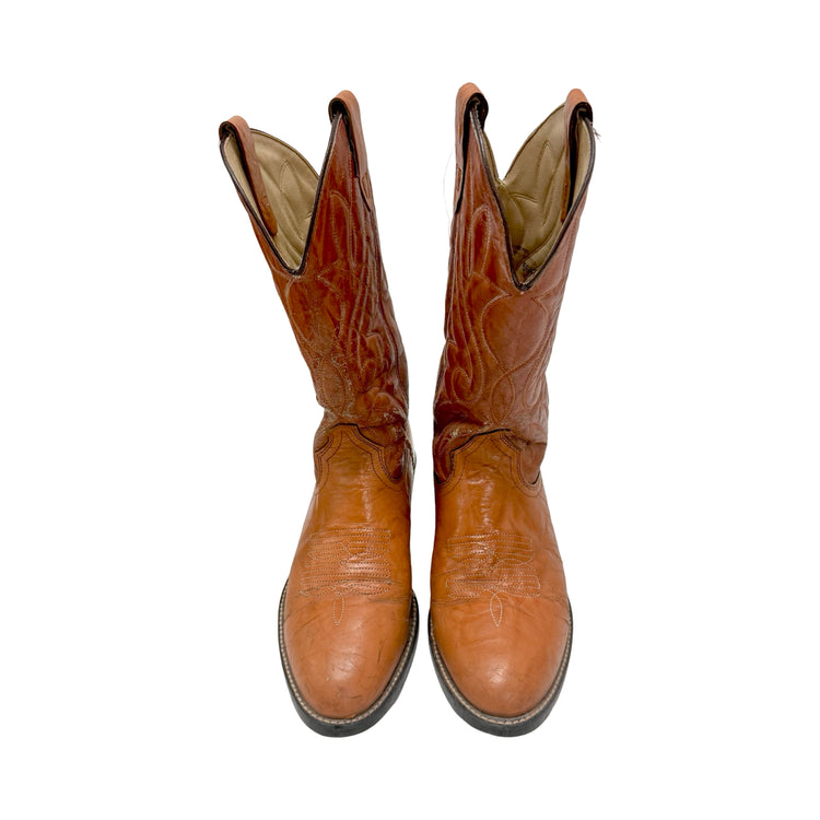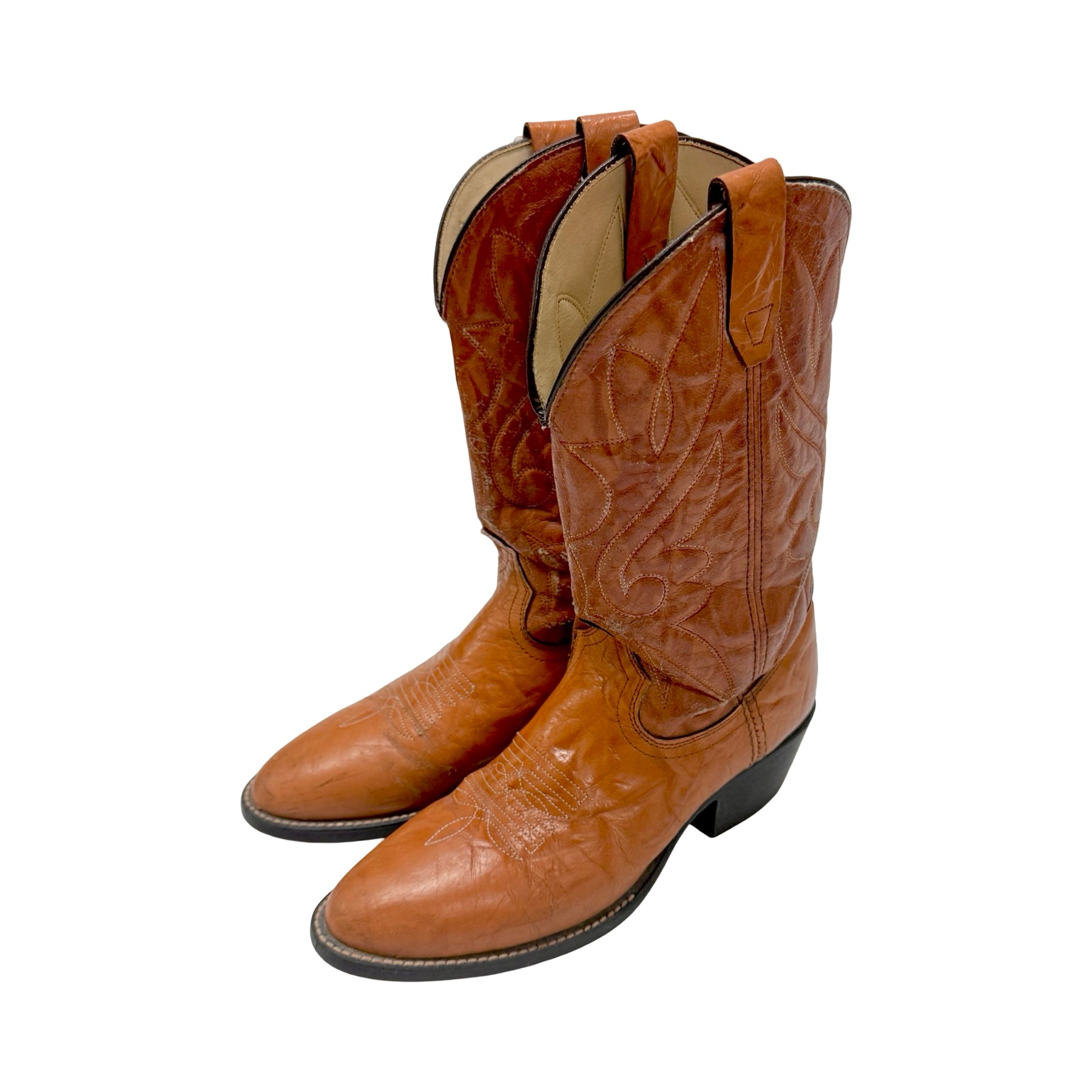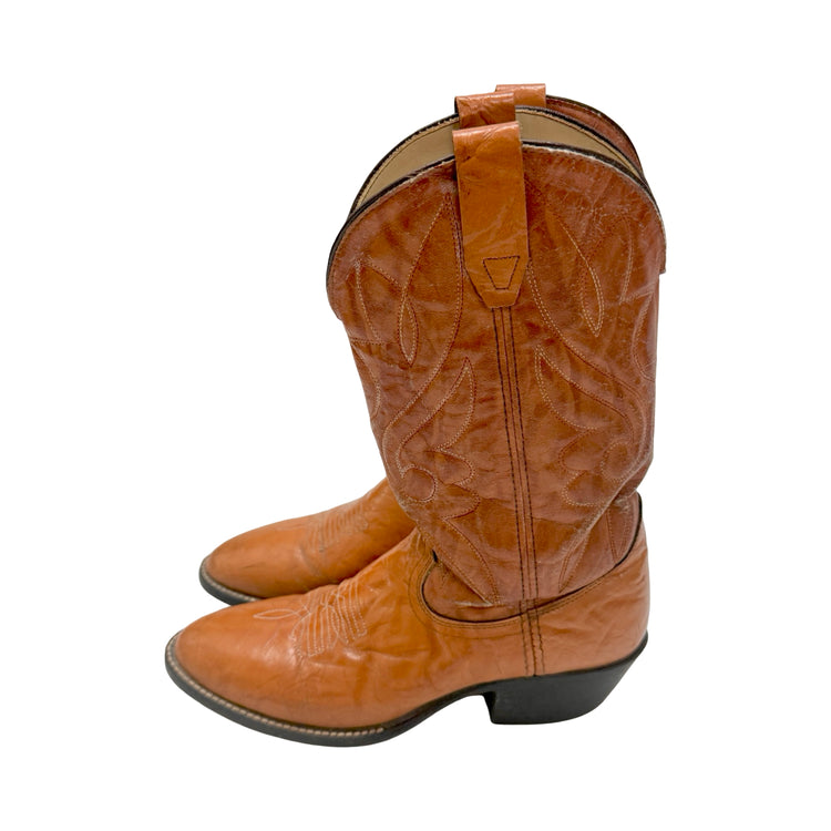 1980’S TAN LEATHER MADE IN USA EMBROIDERED COWBOY BOOTS 9
