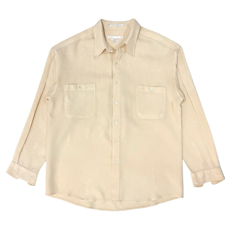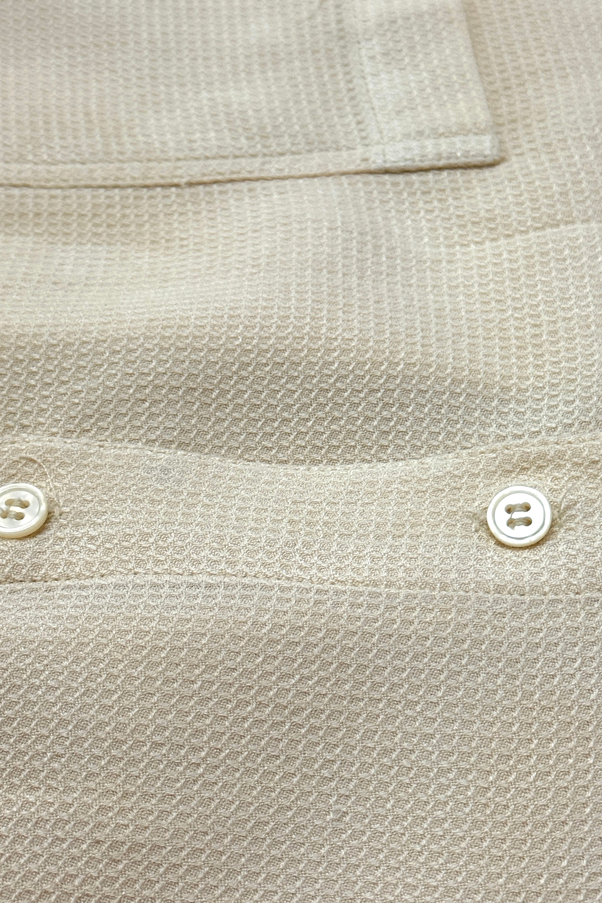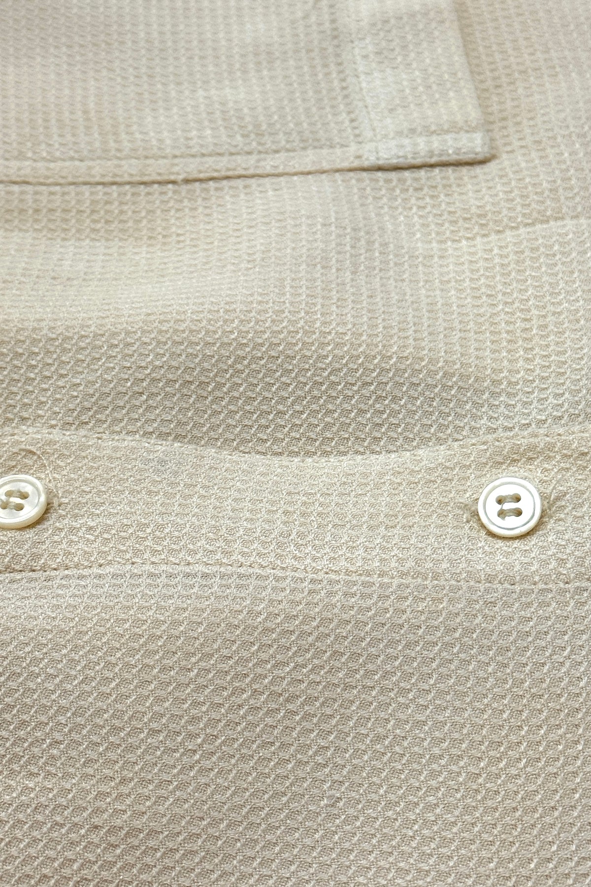 1950’S DONEGAL MADE IN USA SUN FADED CROPPED DRAPEY SELVEDGE RAYON EMBROIDERED LOOP COLLAR S/S B.D. SHIRT MEDIUM