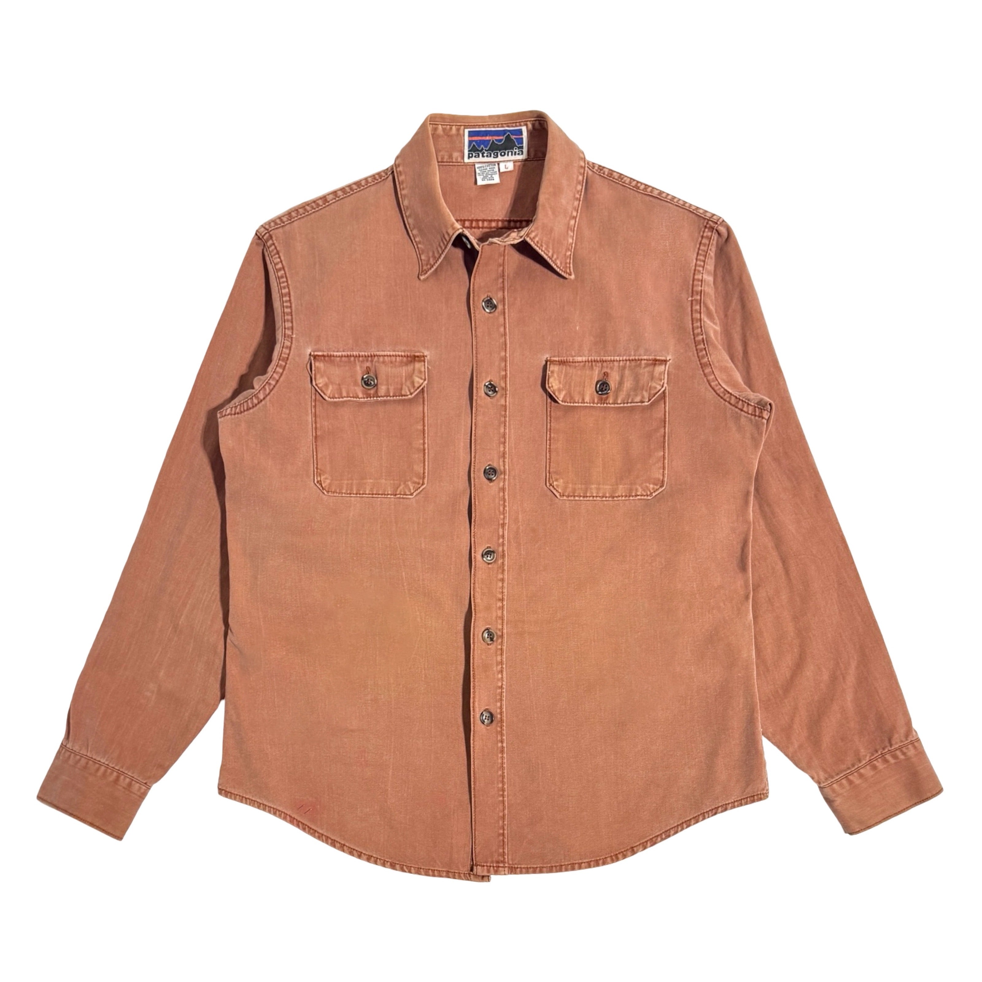 1950’S MASK HANDMADE SELVEDGE FLECKED SLUB LINEN FLAP POCKET LOOP COLLAR S/S B.D. SHIRT LARGE