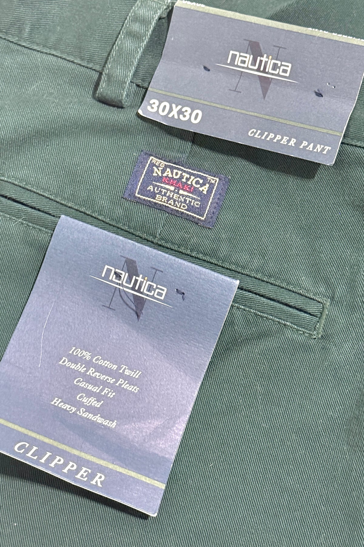 1990’S DEADSTOCK NAUTICA “CLIPPER PANT” HIGH WAISTED PLEATED CUFFED CHINOS 30 X 30