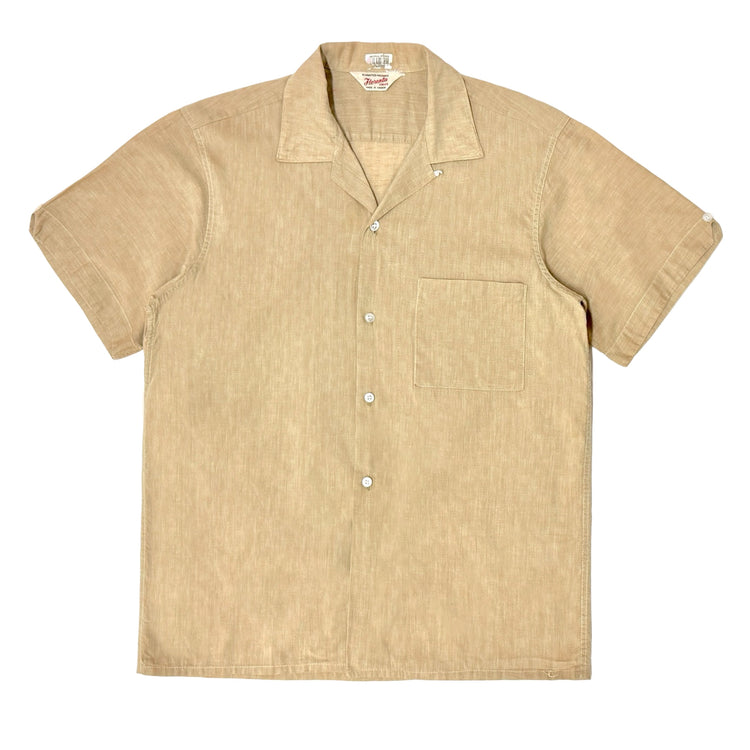 1950’S MASK HANDMADE SELVEDGE FLECKED SLUB LINEN FLAP POCKET LOOP COLLAR S/S B.D. SHIRT LARGE