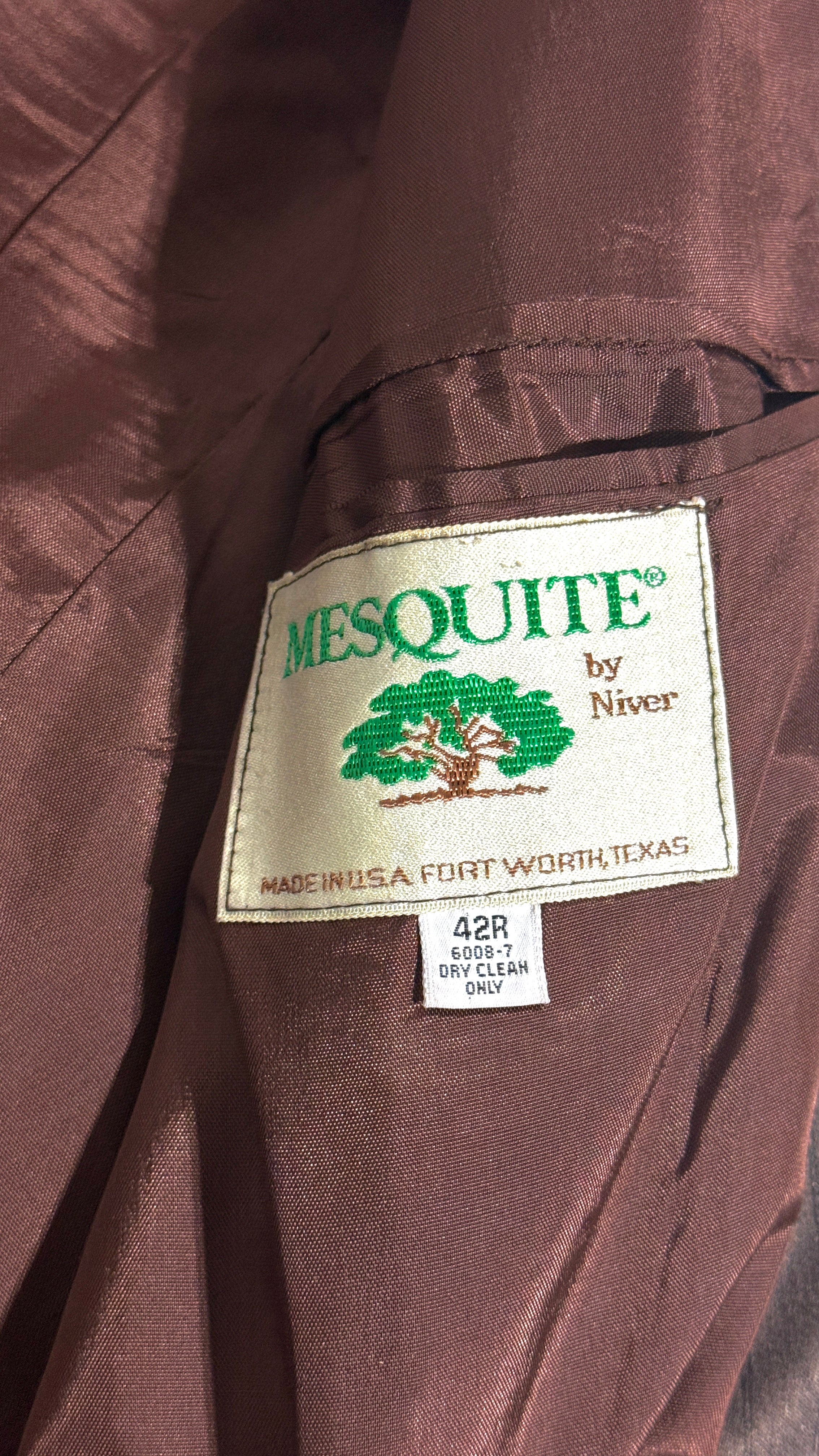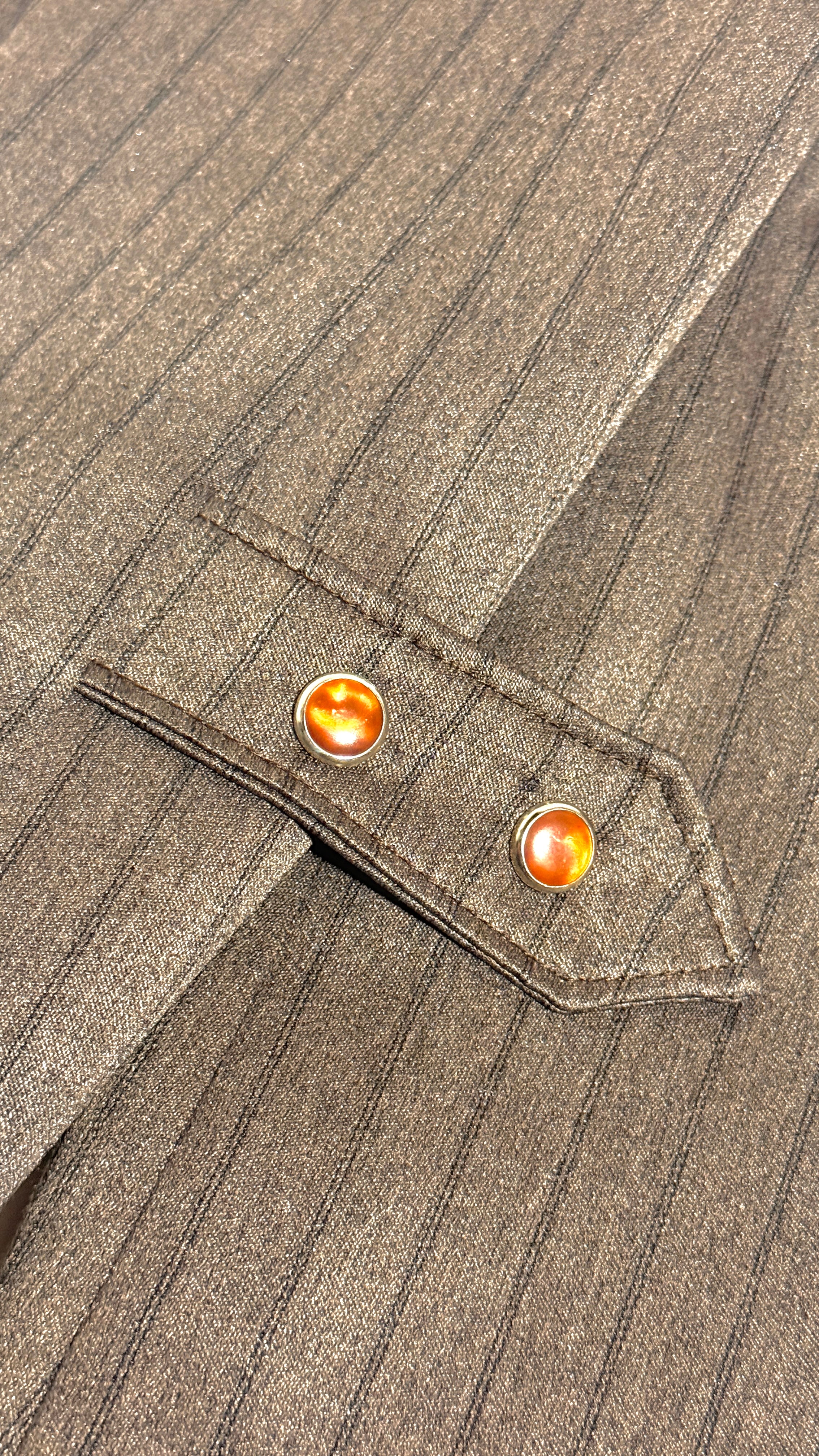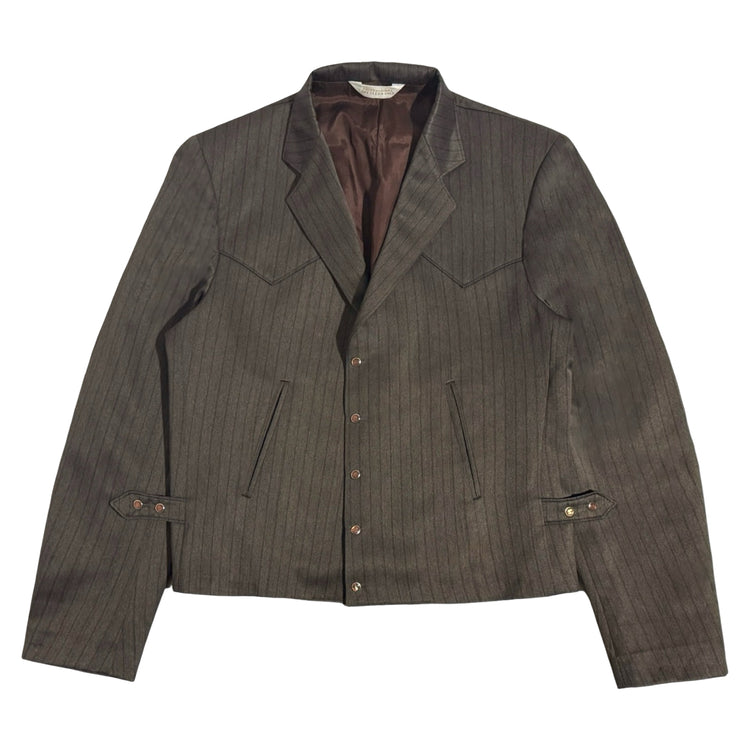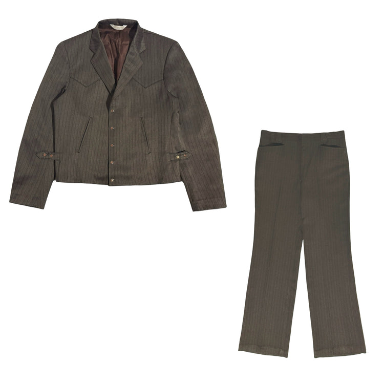 1970’S MESQUITE MADE IN USA CROPPED BROWN STRIPED WESTERN 2 PIECE SUIT 42R