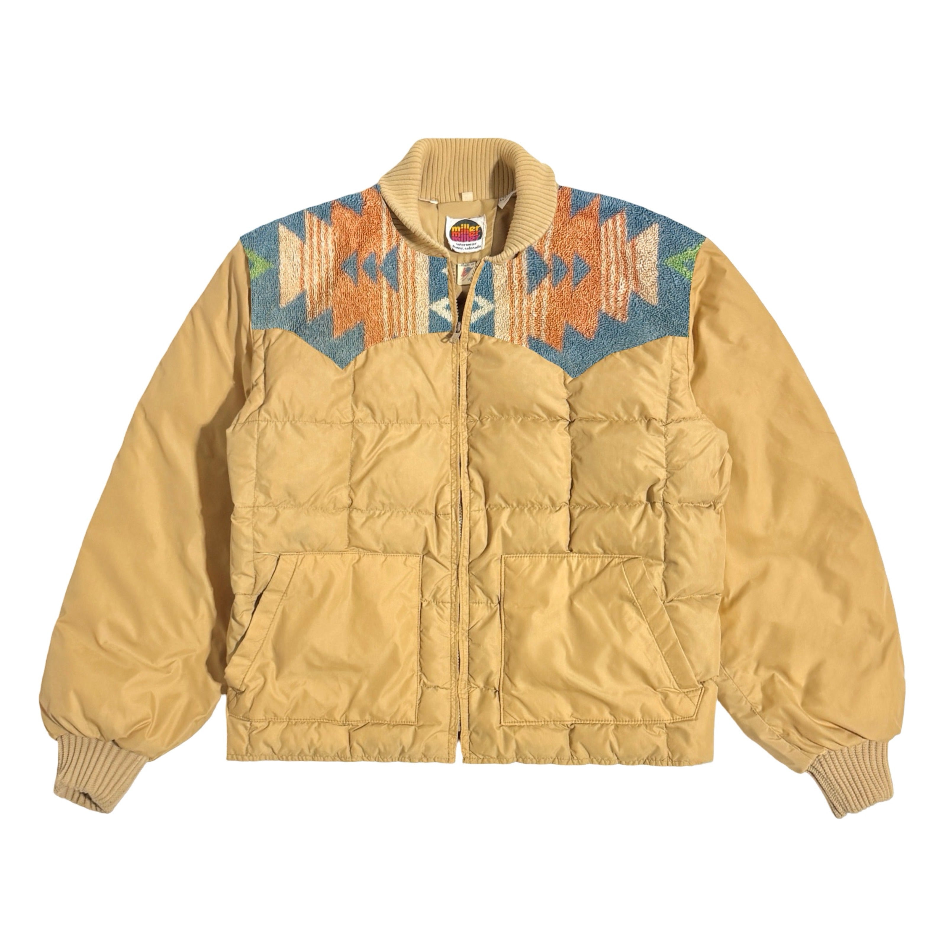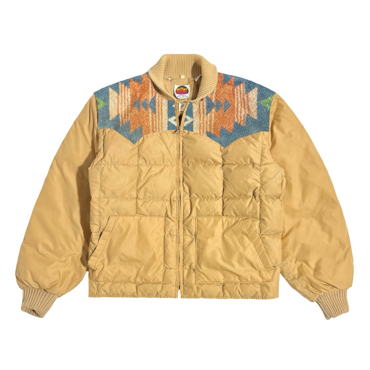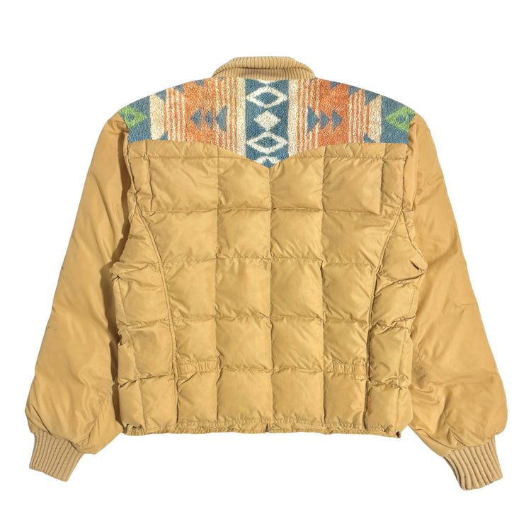 1970’S MASK X MILLER WESTERNWEAR MADE IN USA CROPPED RALPH LAUREN SOUTHWESTERN TERRY PANEL YOKE GOOSE DOWN QUILTED PUFFER JACKET X-LARGE