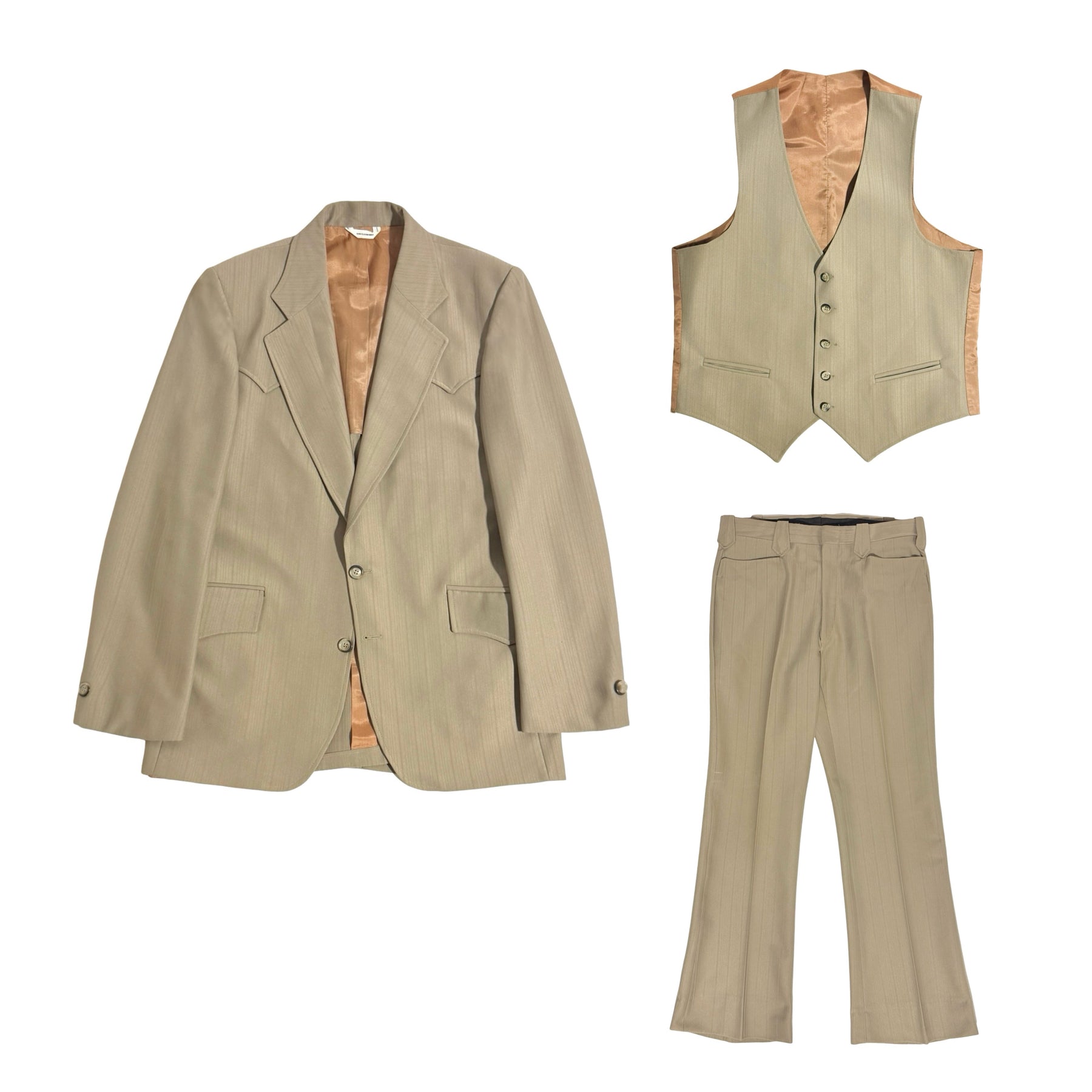1970’S THE RANCH MAN’S SUIT MADE IN USA GHOST STRIPE WESTERN 3-PIECE SUIT 40R