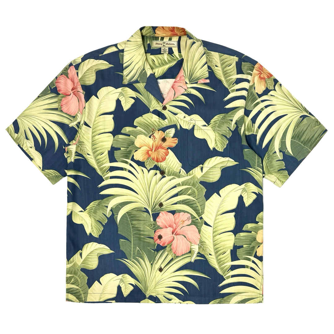 1950’S DONEGAL MADE IN USA SUN FADED CROPPED DRAPEY SELVEDGE RAYON EMBROIDERED LOOP COLLAR S/S B.D. SHIRT MEDIUM