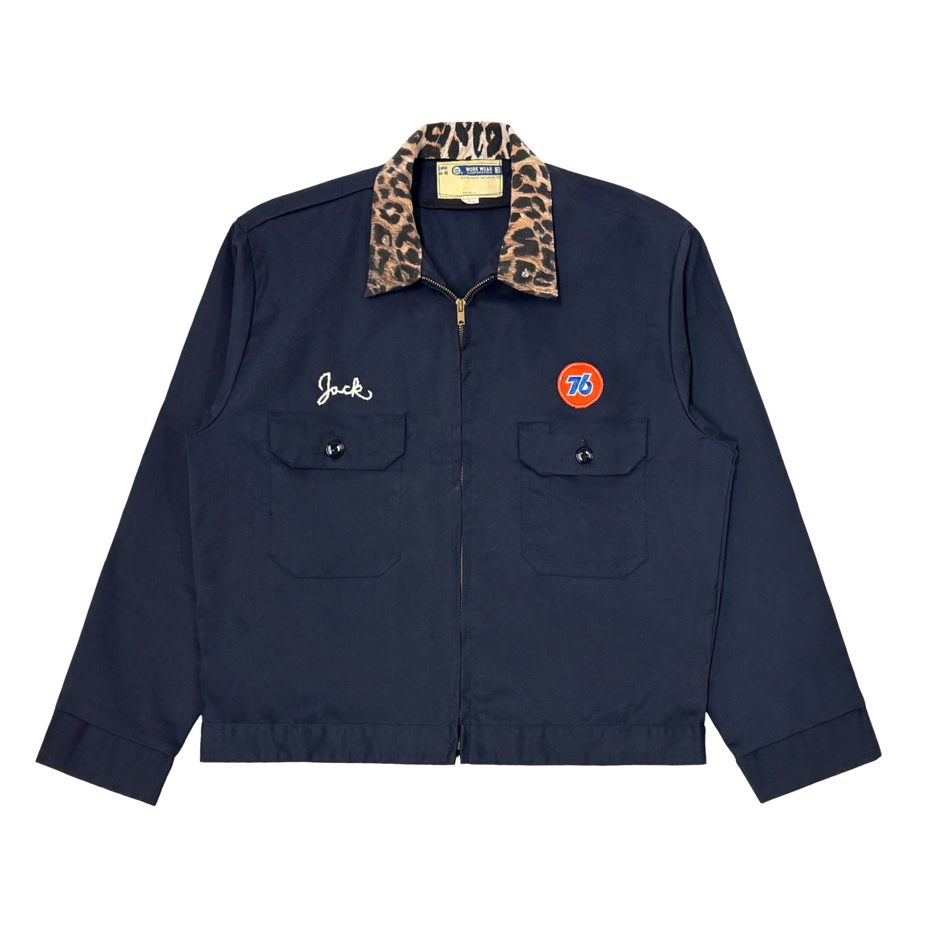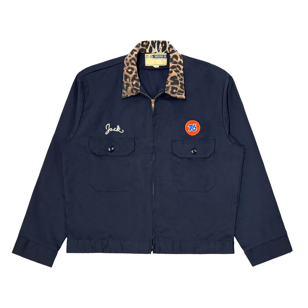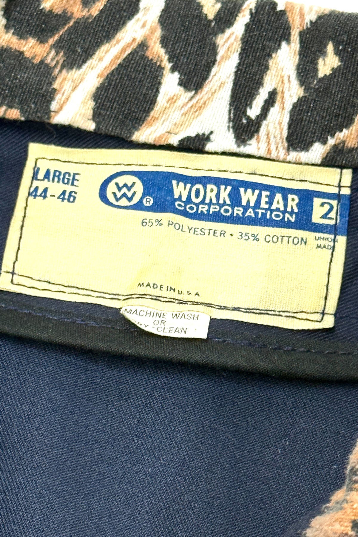 1960’S LION MADE IN USA LEOPARD PRINT PONY HAIR LEATHER COLLAR PATCHED CROPPED RACING JACKET MEDIUM