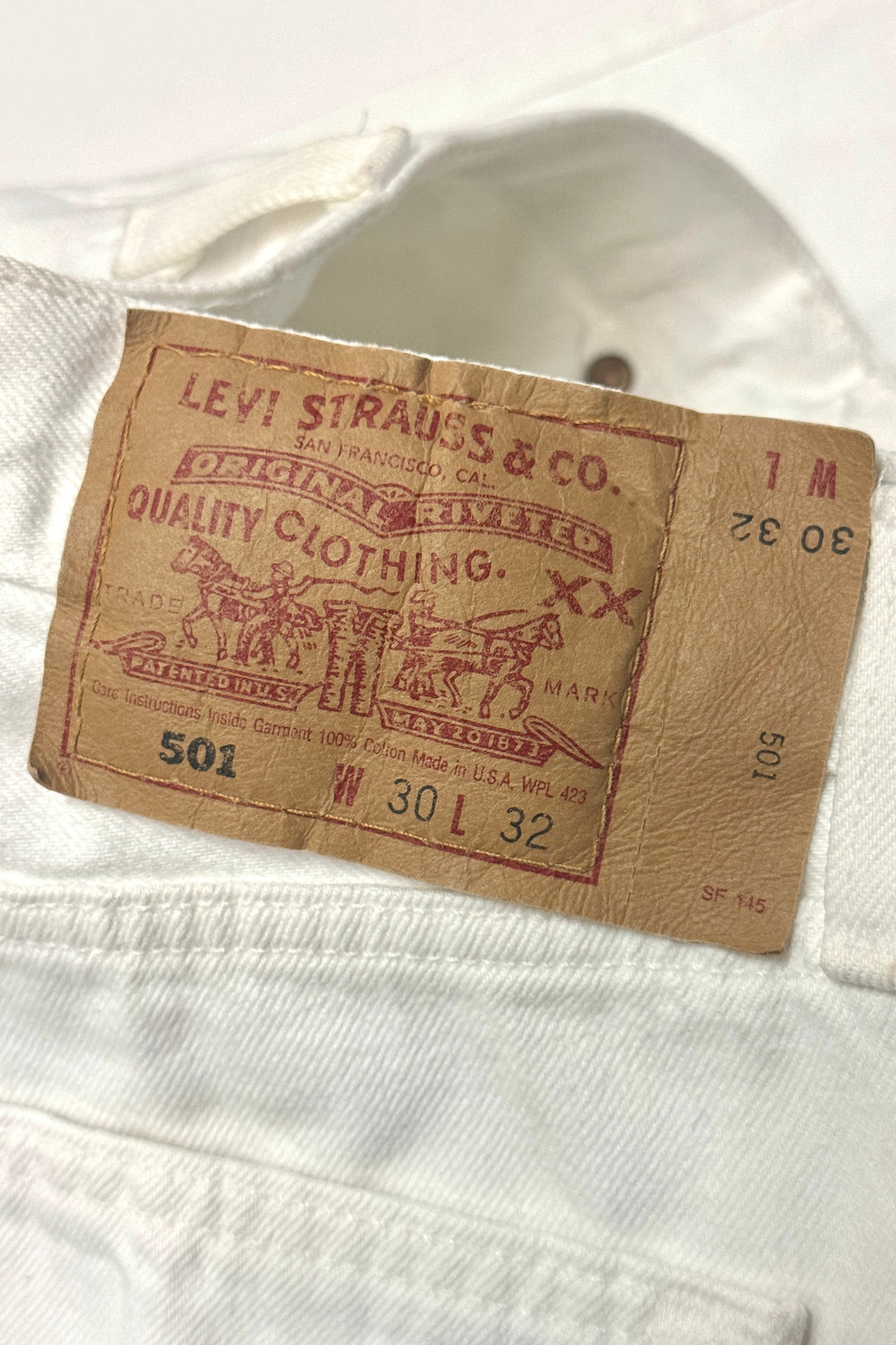 1990’S LEVI’S 501 MADE IN USA WHITE DENIM JEANS 28 X 30